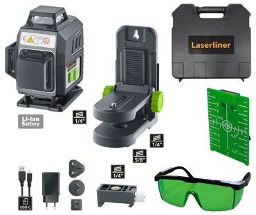 Technische Daten:horizontales/vertikales Nivellieren Handempfängermodus Scan-Modus Punkt-Modus manuelle Neigungsfunktion Präzisionssensor-Nivellierung Akku- und Netzbetrieb Anti-Drift-System (ADS) Tilt-Warnfunktion Selbstnivellierbereich ± 4°Genauigkeit ± 0,15 mm / mNivellierung horizontal / vertikal automatisch mit elektronischen Libellen und ServomotorenLaserwellenlänge 635 nmLaserklasse 2 / < 1 mW (EN 60825-1:2014/A11:2021 / EN 50689:2021)Lasermodi HandempfängermodusPunkt-ModusRotationsmodusScan-ModusSchutzart IP 66Stromversorgung 4 x 1,2V HR6 (AA) NiMHBetriebsdauer ca. 16 Std.Ladezeit ca. 4 Std.Arbeitsbedingungen -10°C … 50°C, Luftfeuchtigkeit max. 80% rH, nicht kondensierend, Arbeitshöhe max. 4000 m über NN (Normalnull)Lagerbedingungen -10°C … 70°C, Luftfeuchtigkeit max. 80% rHAbmessungen (B x H x T) 130 mm x 160 mm x 145 mm x (mit Stativ- und Wandhalterung)Gewicht 1300 g (mit Stativ- und Wandhalterung)