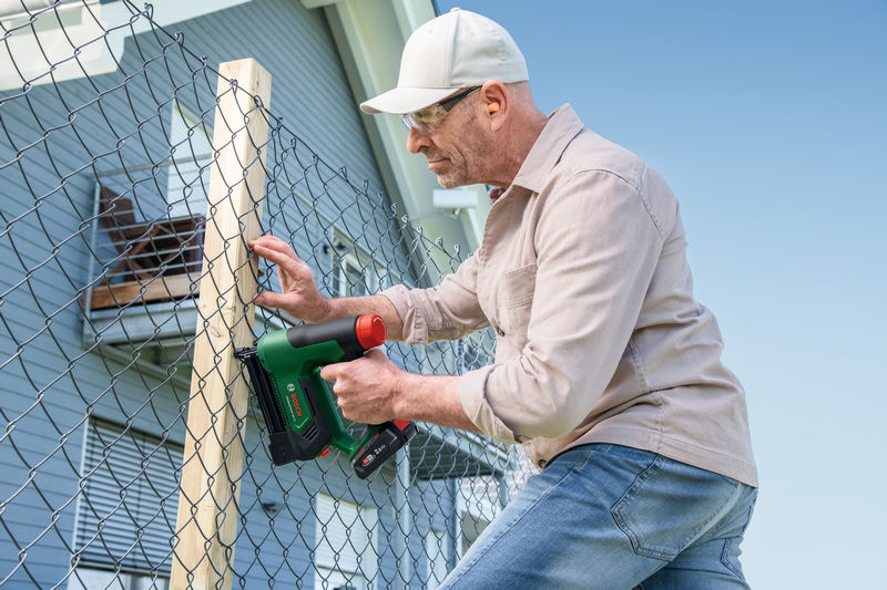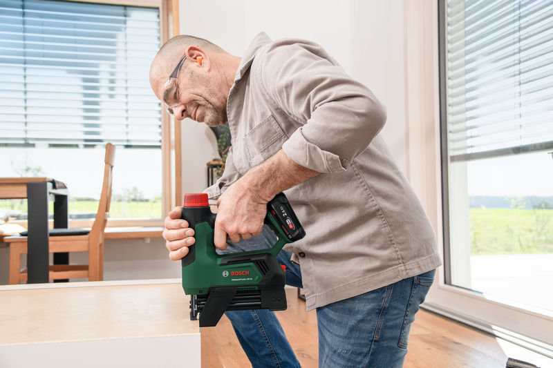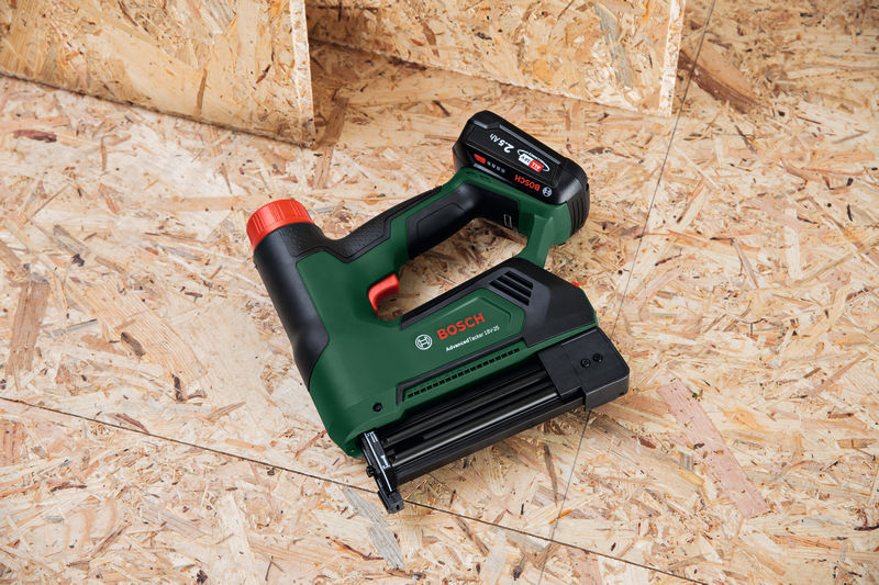 Produktbeschreibung:Akku-Tacker AdvancedTacker 18V-25.Leistungsstarker 2-in-1-Akku-Klammerer/Nagler für eine Vielzahl von Befestigungsaufgaben.Vielseitiger 2-in-1-Klammerer/Nagler: müheloses Befestigen von schmalen Kronenklammern und Brad-Nägeln.Abnehmbares Zubehör zur Abstandsführung: gewährleistet Positionierung jeder Klammer/jedes Nagels mit gleichem Abstand.Drehrad zur Schlagkrafteinstellung: Anpassung der Schlagkraft an die Klammerlänge und den Materialtyp.Push+Release-System für eine kontrollierte und sichere Handhabung.Eingebauter LED-Arbeitsscheinwerfer: Bietet hervorragende Sicht, auch bei schlechten Lichtverhältnissen.Austauschbare Nasenschutzkappe: schützende Nasenkappe zur einfachen Befestigung von Draht/Drahtgeflecht.Kompatibel mit Bosch 18V POWER FOR ALL-Akku.1000 schmale Crown Heftklammern (20 mm).500 Brad Nägel (25 mm).Zubehör Abstandsführung.Nasenkappe mit Drahtführung.KartonschachtelTechnische Daten:3,6 Volt: nein10,8 Volt: nein14,4 Volt: nein18 Volt: neinLithium-Ionen Technologie: neinBosch Electronic Schlagkraftvorwahl: neinMechanische Schlagkraftvorwahl: neinIntegrierte Arbeitsleuchte: neinSoftgrip: neinLadezustandsanzeige: neinVorratsanzeige: neinBosch DuoTac Automatic: neinIntegrierter Akku: neinAkkuspannung: 18,0 VKompatibler Akku: 18V POWER FOR ALL ALLIANCEAkku-Empfehlung: >= 1,5 AhSchläge: 30 bpm11,4 mm Klammern, Länge, von: 12 mm11,4 mm Klammern, Länge, bis: 25 mm11,4-Klammern: 12 - 25 mmNägel, Länge, von: 15 mmNägel, Länge, bis: 30 mmNägel: 15 - 30 mmNageltyp: SchmalrückenklammerWerkzeugabmessungen (L x B x H): 267 x 67 x 240 mmGewicht exkl. Akku: 2,1 kgVerpackungsmaße (L x B x H): 303 x 289 x 89 mmSchwingungsemissionswert ah []: 2,3 m/s²Unsicherheit K []: 1,5 m/s²Lieferumfang:1x Bosch Akku-Tacker AdvancedTacker 18V-25