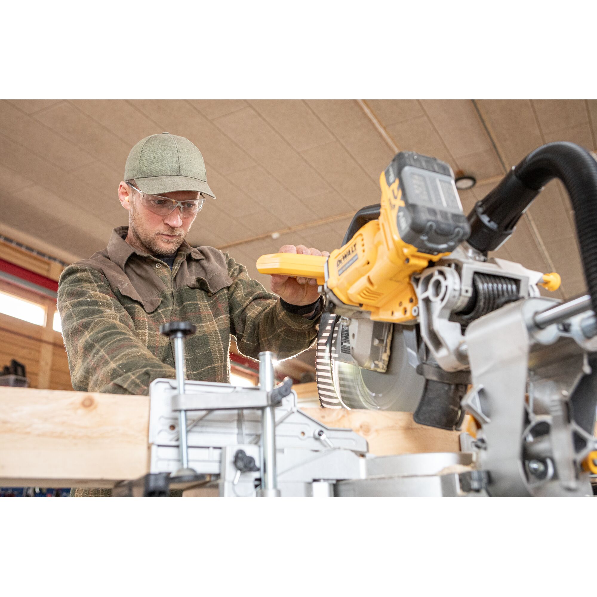 Produkteigenschaften:Außergewöhnliche Laufzeitleistung durch eine Kombination aus Sägeblatt, bürstenlosem Motor und Rekuperation BremstechnologieSehr hohe Schnittkapazität von bis zu 310x90 mm (90°/90°)Exakte Gehrungswinkel schnell und einfach bis 60° rechts und bis 50° links einstellbarStufenlose Einstellung des Neigungswinkels bis jeweils 49° rechts und linksSchnitttiefenbegrenzung zum Zapfen, Kerfen und NutenRobuster und plangefräster Sägetisch und DrehtellerGroßer Doppel-Auszug ermöglicht auch die Bearbeitung großflächiger WerkstückeHochwertige Lagerung des Auszuggestänge für präzise SchnitteMillimetergenaue Schnitte durch LED-unterstützte Schnittlinienanzeige (XPS)Seitliche Griffe für einen einfachen Transport und eine Verlängerung des Sägetisches bei langen WerkstückenWirkungsvolle Staubabsaugung über Air-Lock kompatiblen AbsauganschlussWireless Tool Control (WTC) für automatisches, kabelloses Einschalten eines Saugers beim Start der MaschineSerienmäßig als Basisversion (ohne Akkus und Ladegerät) und damit optimal geeignet bei bereits vorhandenen 18 Volt XR- oder XR FLEXVOLT AkkusTechnische Daten:Akku-Technologie: 18 Volt Li-Ion XR-Akkus aller Ah-KlassenLeerlaufdrehzahl: 3.800min-1Gehrungseinstellungen (links / rechts): 50°/60°Neigungseinstellung (links & rechts): 49°/49°Max. Schnittbereich bei 90°/90°: 310x90mmMax. Schnittbereich bei 90°/45°: 310x54mmMax. Schnittbereich bei 45°/90°: 219x90mmMax. Schnittbereich bei 45° / 45°: 219x54mmSägeblattmaße: 305x30mmGewicht (ohne Akku): 23,2kgSchalldruckpegel LPA (dB(A)): 94,4Schallleistungspegel LWA (dB(A)): 106,4Unsicherheitsfaktor K (dB(A)): 2,5Lieferumfang:XR Extreme Runtime 60WZ/FZ Sägeblatt