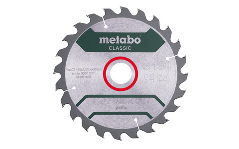 Deutschland 07022/720 Metabo Sägeblatt "precision cut wood - classic", 190x30 Z24 WZ 15° (628675000) Artikel-Nr.: 628675000 EAN: 4061792186767 Hersteller: METABO