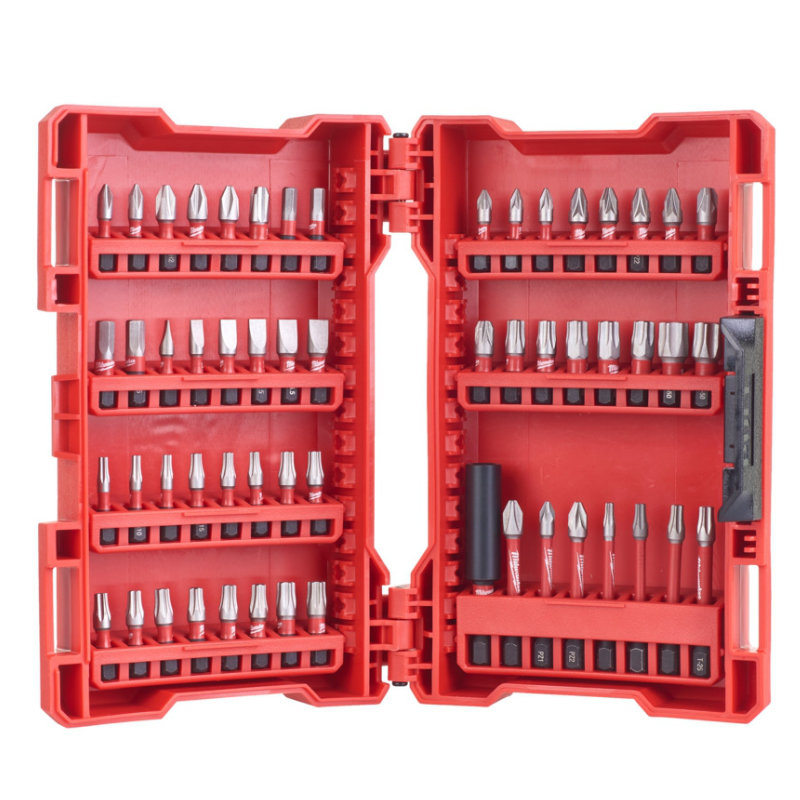 Milwaukee SHOCKWAVE Set Schrauben 56-teiligSHOCKWAVE™ schlagfestes Zubehör ist die Systemlösung im Bereich Schlagschrauben. Das innovative Systemzubehör ist nicht nur schlagfest und damit für den Einsatz mit Schlagschraubern geeignet, sondern bietet für alle Bohr- und Schraubfälle das passende Zubehör.Lasergehärtete WEAR GUARD TIP™ Bitspitze für präzise Passgenauigkeit und längere Lebensdauer.SHOCK ZONE™ Geometrie - sehr flexibel, um Schlageinwirkungen zu absorbieren.Die flexible SHOCK ZONE™ verringert die Belastung auf die Bitspitze und dadurch die Bruchgefahr. Die Kombination aus der SHOCK ZONE™und einem speziellen Härteverfahren absorbieren die Schlageinwirkungen.Spezialstahl: Die für Milwaukee® entwickelte Stahllegierung ist speziell für SHOCKWAVE™ Bits sowie auf den Einsatz mit Schlagschraubern abgestimmt. Die SHOCKWAVE™ Bits sind dadurch standfester und gleichzeitig flexibler – optimal für harte Schraubfälle.