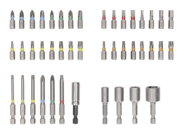 Sein FlexiClick System umfasst vier Zubehörteile (10-mm-Bohrfutter, arretierbarer Bithalter, Winkelaufsatz (rechtwinklig) und Exzenteraufsatz), die einfach gewechselt,