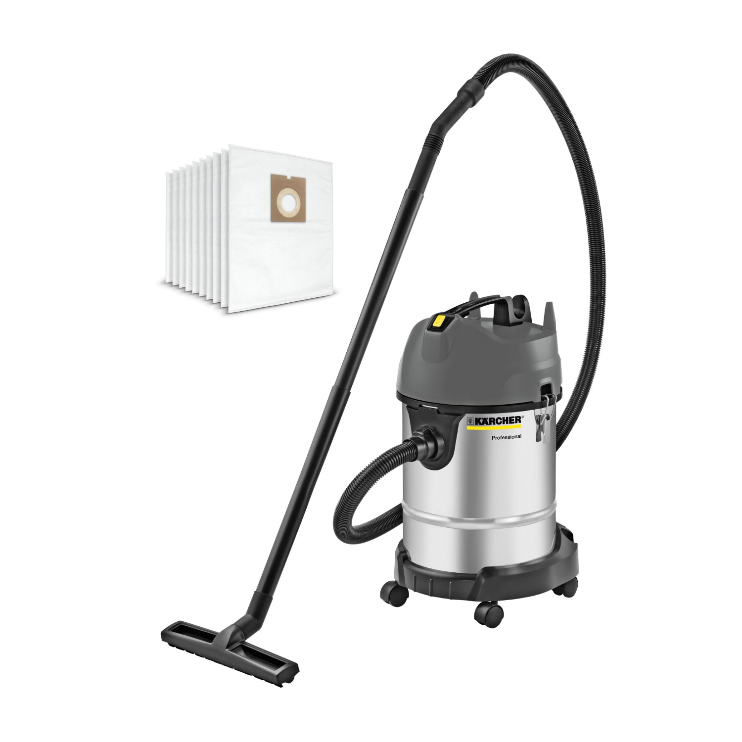 Lieferumfang: 1x Kärcher Nass-/Trockensauger NT 30/1 Me CLASSIC EDITION, 30 l 1x Kärcher Vlies-Filtertüten 10x NT 1x Saugschlauch m 2,5 / mit Krümmer 2x Saugrohr m 0,5 / Metall 1x Filtertüte Stück 1 / Papier 1x Nass-/Trockenbodendüse mm 360 1x Fugendüse Ja 1x Edelstahlbehälter Ja