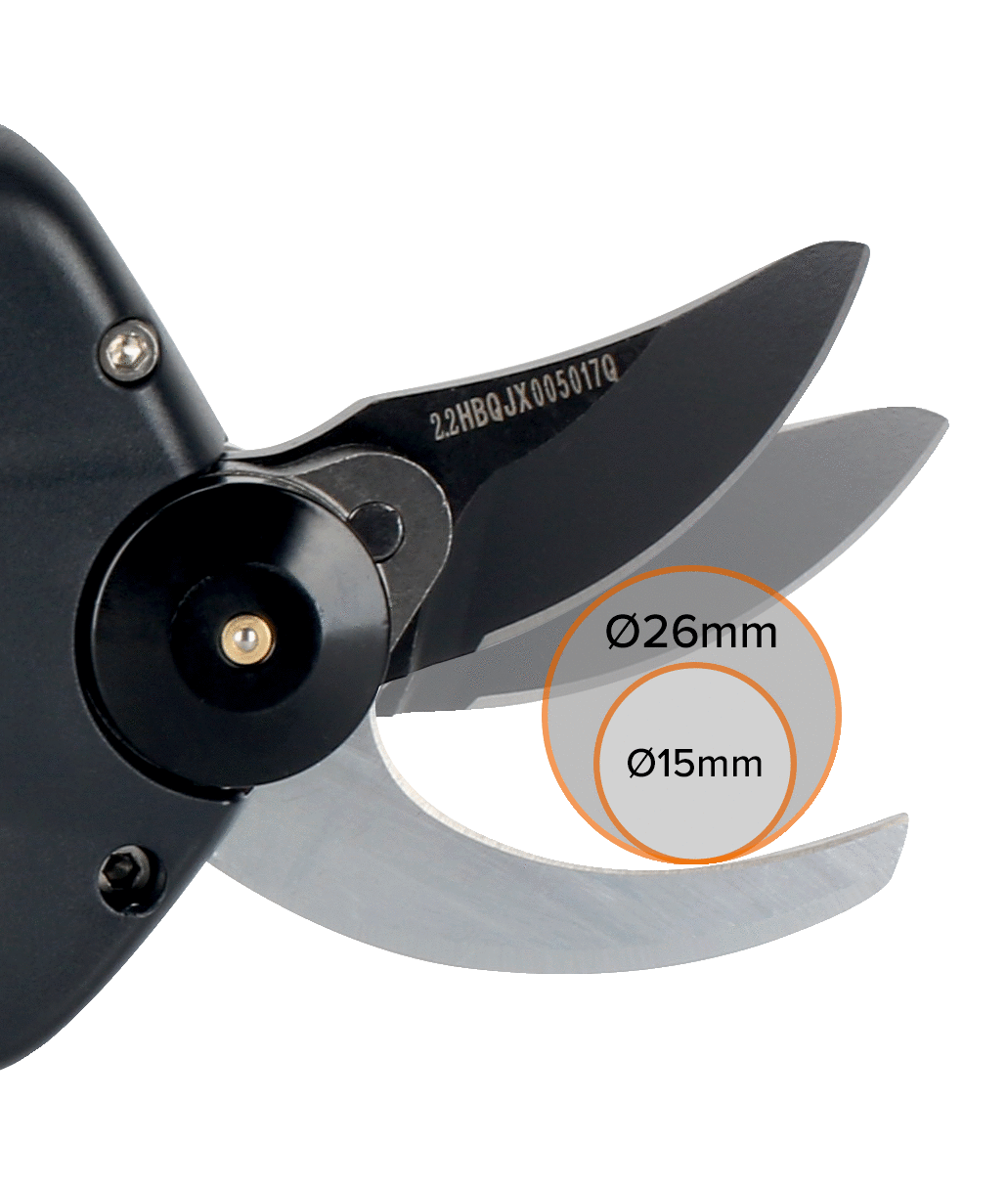 Produkteigenschaften: Ideal für den schnellen und schonenden Schnitt an kleinen Reben und dünnen Ästen Hochwertige SK5-Stahlklingen mit langanhaltender Schärfe für hervorragende Schnittqualität bis zu Ø 26 mm Extra verschleißfeste und korrosionsbeständige Polymerbeschichtung Progressiver Schnitt mit 2 voreingestellten Klingenöffnungen (15 mm und 26 mm) Völlige Bewegungsfreiheit dank Einsteckakku Gehäuse aus verstärktem Kunststoff mit weichem Griff für hohen Arbeitskomfort und Langlebigkeit Zentrierbolzen mit Schmierbohrung und Mutternsicherungssystem für einfache Wartung und Einstellung Smart Screen mit Anzeige der verbleibenden Akkuladung und Anzahl der Schnitte Lieferung inklusive zweitem Akku für bis zu 6 Stunden Betriebszeit Für Links- und Rechtshänder geeignet