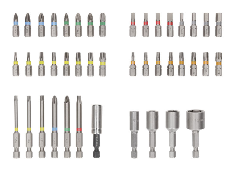 Produktbeschreibung: Das Extra Hard Set, 43tlg. beinhaltet alle Standardbohrer und Steckschlüssel, die du für Schraubarbeiten benötigst. Die Schrauberbits bestehen aus wärmebehandeltem, S2-modifiziertem Stahl für Härte und Verschleißfestigkeit. Sie sind farbcodiert, damit du das richtige Bit einfacher findest. Das Set ist in einem robusten Pick and Click-Koffer untergebracht, damit du deinen eigenen Werkzeugkasten zusammenstellen und deine Bits gut organisiert und geschützt aufbewahren kannst.Technische Daten: Abmessung: PH1 Länge mm: 25 Lieferumfang: 1x Bosch 43pc ExH Set w/displ
