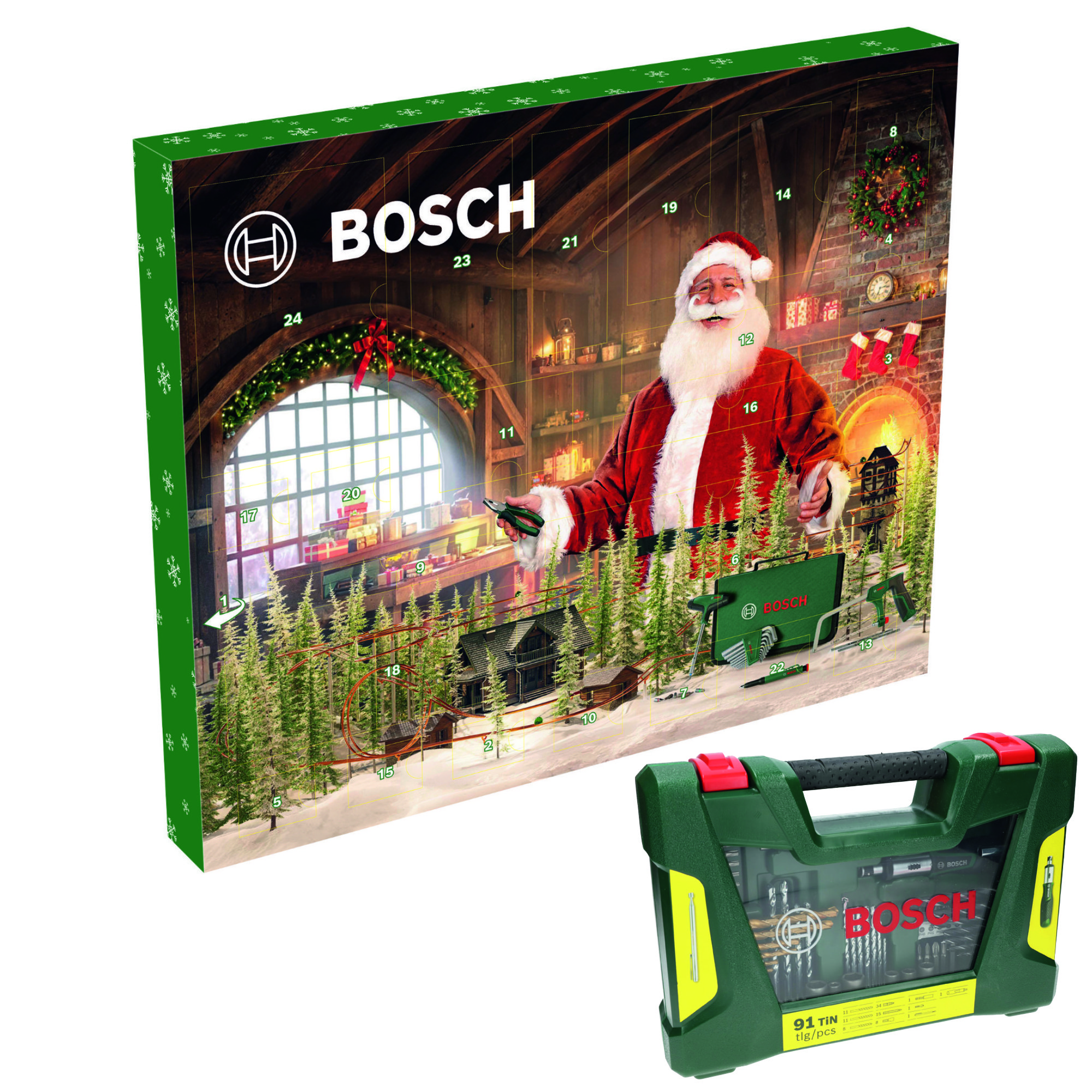 1x Kegelsenker1x Magnetischer BithalterLieferumfang:1x Bosch Home and Garden Handwerkzeug Adventskalender 2025, 41-teilig, inkl. Stofftasche1x Bosch V-Line TiN-Bohrer- und Bit-Set, 91-teilig, Ratschen-Schraubendreher, Magnetstab