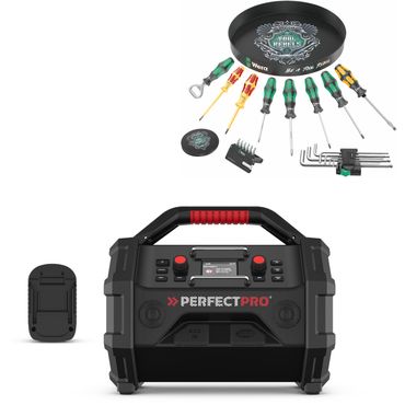 Produktbeschreibung: Radio GPB 18V-5 C Das GPB 18V-5 C Professional ist das robuste Radio für vollen Sound und Musik auf jeder Baustelle. Es ist mit zahlreichen Quellen wie Bluetooth®, FM und AUX kompatibel und bietet die erforderliche Flexibilität, um jede Baustelle mit Rocksongs, Beats und mehr zu versorgen. Äußerst robust: Das GPB 18V-5 C Professional verfügt über einen schützenden Überrollkäfig und wurde für den Einsatz bei rauen Baustellenbedingungen konzipiert. Dynamisch und kraftvoll zugleich: Der beeindruckende Klang dieses Radios kommt aus vier Lautsprechern mit einer Gesamtausgangsleistung von 20 Watt und einem integriertem Subwoofer (20 W) für eine starke Basswiedergabe. Dieses Gerät ist ideal zum Abspielen von Radioprogrammen oder Musik über Bluetooth® geeignet. Das Gerät ist mit allen Bosch Professional 18-Volt-Akkus kompatibel. Das GPB 18V-5 C Professional kann mit einem 18-Volt-Akku oder mit Netzstrom betrieben werden und verfügt zusätzlich über zwei Ausgänge zur Stromversorgung von Werkzeugen sowie USB-Anschluss für eine Schnellaufladung mit bis zu 2,1 A.
