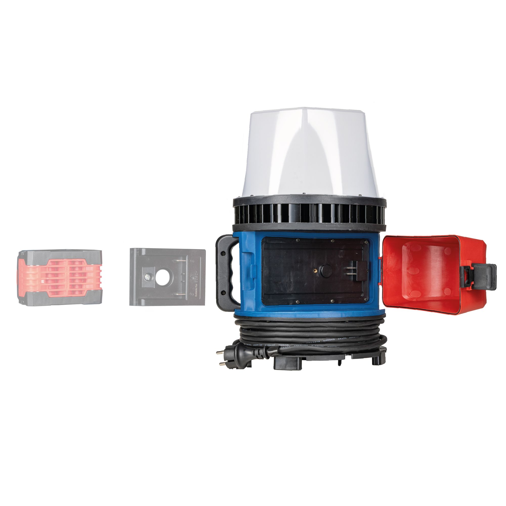 Weitere passende Akkuadapter 18 V zu DeWalt/ Milwaukee, Makita, Metabo (CAS-System), Festool, Einhell, Hikoki und Flex sind separat erhältlichTechnische Daten:Mit Batterie NeinHandbuch erforderlich JaPLC-Status AktivBeleuchtungGesamtlumen 12000 lmFarbwiedergabeindex 80Abstrahlwinkel 200 °Photobiologische Sicherheit RG1Lichtfarbtemperatur 5000 KBeschreibung der Lichtfarbe KaltweißFarbkonsistenz in McAdam-Ellipsen SDCM6Lichtausbeute 150 lm/wElektrischNennleistung 80 WEingangsstrom 366 mALeistungsfaktor 0,9Eingangsspannung 100-240 V ACEingangsfrequenz 50/60 HzDimmbar JaDimmerart StufenSicherheitsklasse IILeistungLebensdauer L70B50 60000 hBetriebstemperatur -20 — 45 °CEnergieeffizienzklasse DIP-Bewertung IP55Schlagfestigkeit IK08Grober Dienst JaMechanischArtikelmaterial NylonArtikelhöhe 399 mmArtikeltiefe 256 mmArtikelbreite 255 mmArtikelnettogewicht 4600 gAC Kabeltyp H07RN-F 2X1,0 mm²Kabellänge 5 mKabelfarbe SchwarzSteckertyp Type C: CEE 7/17 (Konturenstecker)