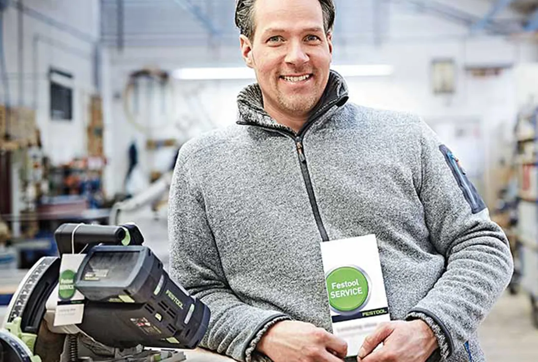 SERVICE UND GARANTIE Maximale Sicherheit und Service – mit 3 Jahren Warranty all-inclusive, Geld-zurück-Garantie und 10 Jahren Ersatzteilgarantie. Jetzt Festool Service entdecken