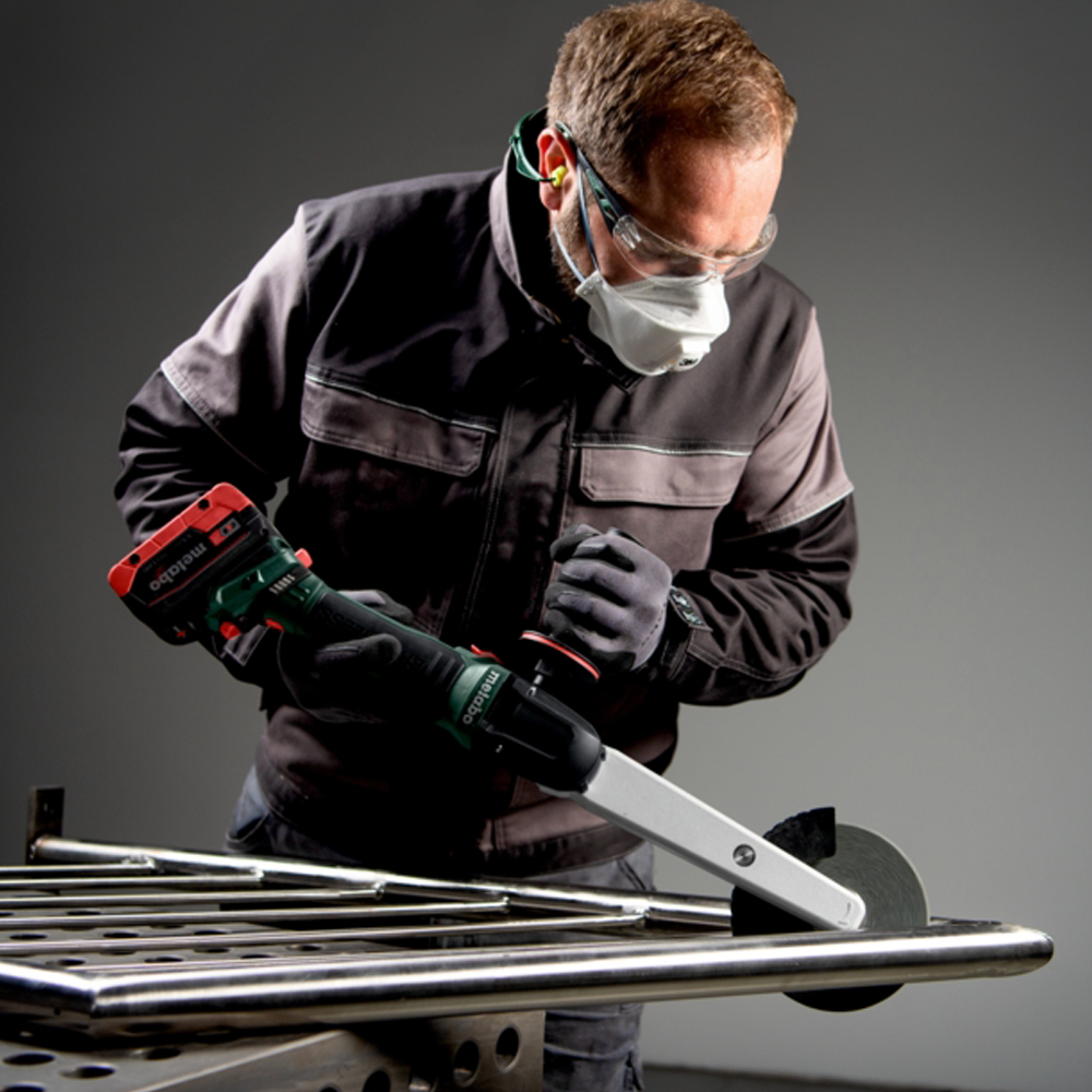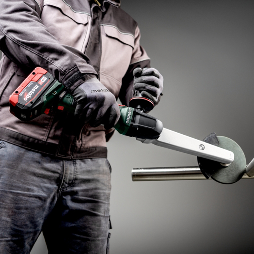 Der Akku-Kehlnahtschleifer ist sehr flach und mit einem leistungsstarken Brushless-Motor ausgestattet, ideal für das Bearbeiten von Kehlnähten in engen Räumen.