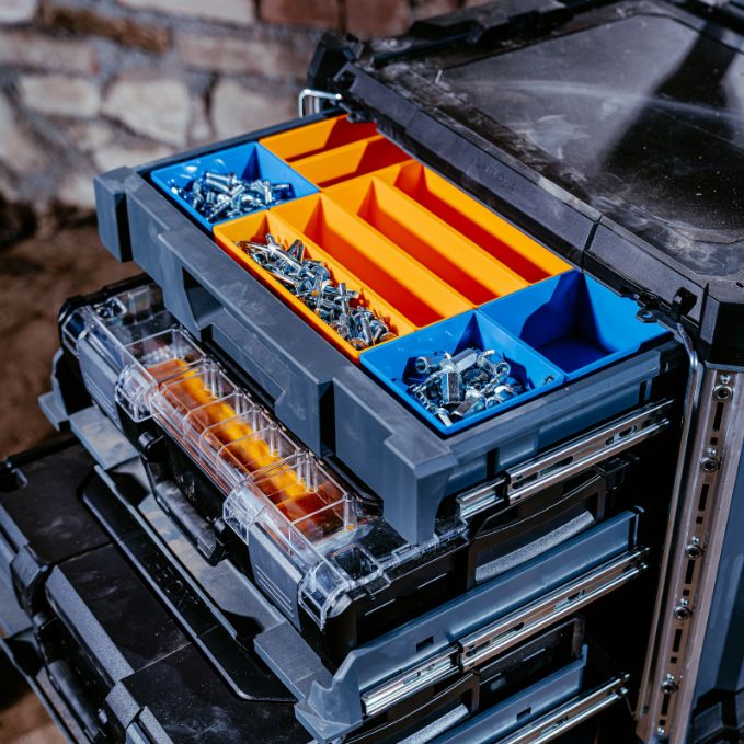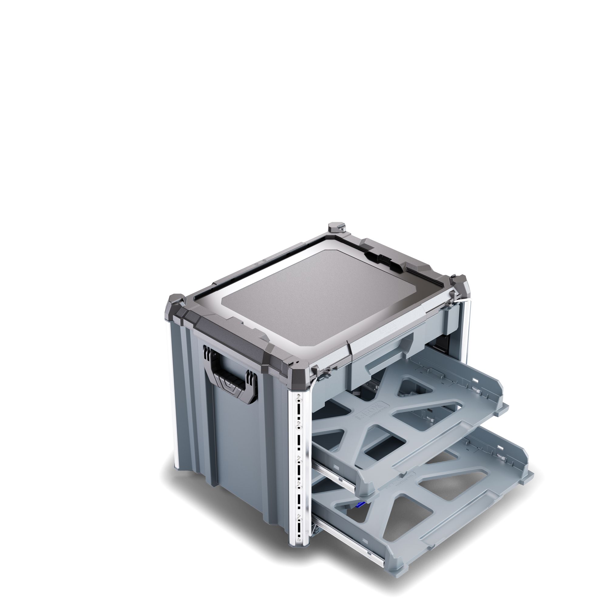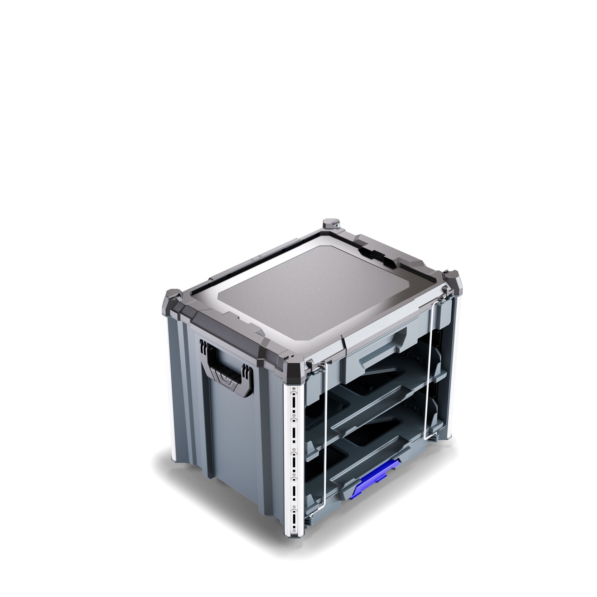 Produktbeschreibung:Chaos war gestern. Der Werkzeugkoffer - Large Drawer Tool Box C1 kombiniert eine fest verbaute Schublade mit zwei Auszügen für L-BOXXen, W-BOXXen oder T-BOXXen - ideal, wenn Du flexibel bleiben willst, aber Ordnung brauchstDie 120%-Auszüge ermöglichen den vollen Zugriff auf Deine BOXXen - selbst bei Einbau im Fahrzeug oder auf der BaustelleOb Kleinteile in der Schublade oder Material im Werkzeugkoffer: Alles bleibt aufgeräumt, griffbereit und dank klappbarer Metallbügel auch unterwegs sicher verstaut. Stapelbar, verkoppelbar und dank Klickmechanismus im Handumdrehen wieder getrenntVoll kompatibel mit dem L-BOXX Contractor und ProClick System sowie der millionenfach eingesetzten L-BOXX BaselineRobuste Aluminiumschienen sorgen für Stabilität und dienen als Andockpunkt für die ProClick Werkzeugtaschen und Halter - die M6-Innengewinde erweitern die Möglichkeit noch mehr Zubehör sicher zu transportierenUnd wenns richtig mobil werden soll? dann klicke Dein Werkzeugmodul einfach auf die Large Rolling Tool Box und fertig ist Deine rollende WerkstattUnd nicht zu vergessen: Per Klickmechanismus stapelbar, dank Cubingkonzept zum stabilen Unterbau für eine mobile Arbeitsfläche erweiterbar - so entsteht vor Ort Struktur mit MehrwertUnd wenn Sicherheit auch noch eine Rolle spielt - dann kannst Du dank Safety Lock Dein Werkzeugmodul einfach mit Vorhängeschlössern absperrenDie L-BOXX Contractor Large Drawer Tool Box C1 - für alle, die Struktur mit System liebenEin Kofferschrank, drei Zugriffe - mehr braucht’s nicht für den perfekten Baustellen-Workflow.Technische Daten:Farbe: Schwarz / Anthrazit / UltramarinblauAußenmaße in mm: B559 x T432 x H476Gewicht in kg: 11,4Lieferumfang:1x L-BOXX Contractor SystemboxLarge Drawer Tool Box C1