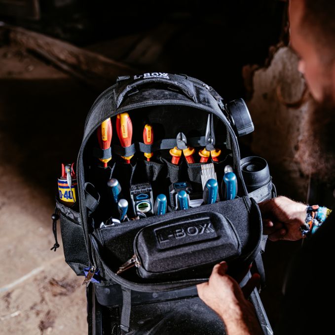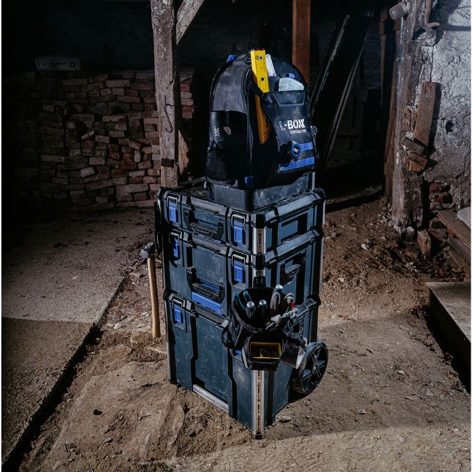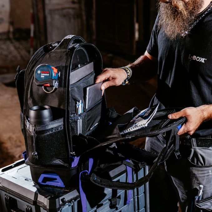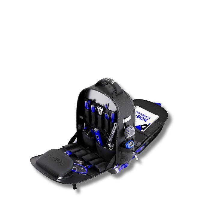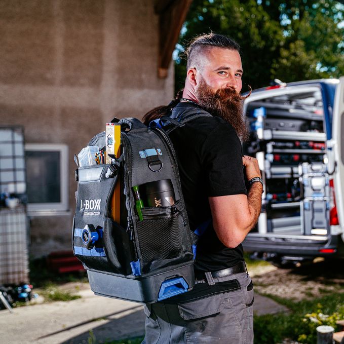 Produktbeschreibung: Alles dabei - und die Hände frei. Der Werkzeugrucksack Tradesman Tool Backpack ist Dein mobiler Rückenprofi im L-BOXX Contractor System - ideal für Dich, wenn Du viel unterwegs bist und trotzdem bestens organisiert sein willst. Mit nur 3,7kg Eigengewicht trägt sich der robuste Werkzeugrucksack auch bei voller Beladung angenehm. Gepolsterte Schultergurte und ein ergonomisch geformter Rückenbereich sorgen für Tragekomfort - selbst bei bis zu 24kg Gesamtlast. Innen punktet der Backpack mit einer durchdachten Fächerstruktur, die nicht nur Dein Werkzeug sicher verstaut. Das integrierte Laptopfach und das Schutzcase für Brillen runden das vielseitige Fächerangebot ab. Unten stabil, oben flexibel - die stoßfeste Bodenwanne aus langlebigem PP schützt zuverlässig vor Stößen, Feuchtigkeit und Schmutz. Und durch den integrierten Koppelmechanismus lässt sich der Rucksack direkt mit allen L-BOXX Contractor Werkzeugkoffern verbinden - für maximale Mobilität im System. Der L-BOXX Contractor Tradesman Tool Backpack - komfortabel, durchdacht und immer einsatzbereit - genau wie Du.Technische Daten: Farbe: Schwarz / Ultramarinblau Außenmaße in mm: B396 x T247 x H537 Gewicht in kg: 3,7Lieferumfang: 1x L-BOXX Contractor Werkzeugrucksack Tradesman Tool Backpack