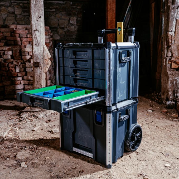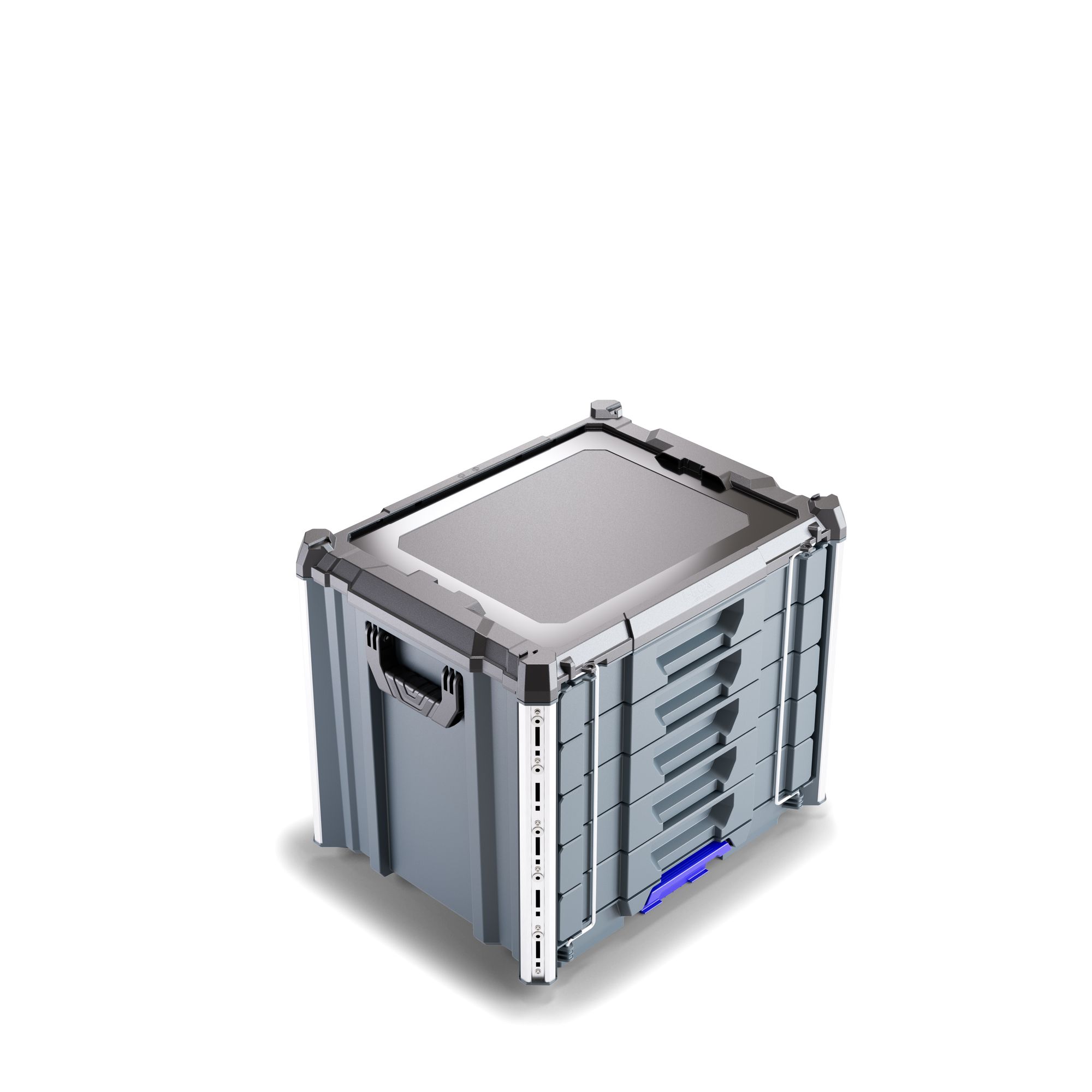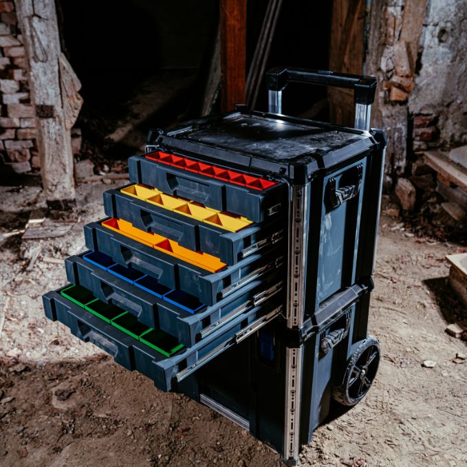 Produktbeschreibung:Fünf Schubladen, volle Kontrolle. Der Werkzeugkoffer mit Schubladen, die Large 5 Drawer Tool Box ist das Organisationstalent im L-BOXX Contractor System - robust, funktional und bereit für alles, was Dein Arbeitsalltag verlangtDie gleichgroßen Schubladen bieten strukturierten Stauraum für Werkzeuge, Kleinteile und Verbrauchsmaterialien - übersichtlich und griffbereitMit optionalen Insetboxensets individuell organisierbar, ist maximale Ordnung ohne langes Suchen garantiertOb Werkstatt, Baustelle oder Fahrzeug - alles hat seinen Platz und bleibt auch dortFür einen sicheren Transport sorgen stabile klappbare Metallbügel, während seitliche Griffe ein komfortables Handling ermöglichenDie Integrierten Aluminiumschienen bieten mehr Stabilität und Andockpunkte für ProClick Werkzeugtaschen und Halter - die M6-Innengewinde sind zusätzliche Anbindungsmöglichkeiten für den sicheren Transport von noch mehr ZubehörIn Kombination mit der L-BOXX Contractor Large Rolling Tool Box wird’s mobil - einfach oben aufklicken und entspannt rollenDer Klickmechanismus trennt beides bei Bedarf wieder - ohne Kraftaufwand, aber mit System. Stapelbar, verkoppelbar und kompatibel mit dem L-BOXX Contractor und ProClick System sowie der millionenfach bewährten L-BOXX Baseline - so wird aus einzelnen Modulen ein komplettes System das Dir die Arbeit erleichterUnd nicht zu vergessen: Per Klickmechanismus stapelbar, dank Cubingkonzept zum stabilen Unterbau für eine mobile Arbeitsfläche erweiterbar - so entsteht vor Ort Struktur mit Mehrwert. Und wenn Sicherheit auch noch eine Rolle spielt - dann kannst Du dank Safety Lock Dein Werkzeugmodul einfach mit Vorhängeschlössern absperrenDie Large 5 Drawer Tool Box - wenn aus Chaos Struktur wird.Technische Daten:Farbe: Schwarz / Anthrazit / UltramarinblauAußenmaße in mm: B559 x T432 x H476Gewicht in kg: 15,5Lieferumfang:1x L-BOXX Contractor Systembox Large 5 Drawer Tool Box mit Schubladen