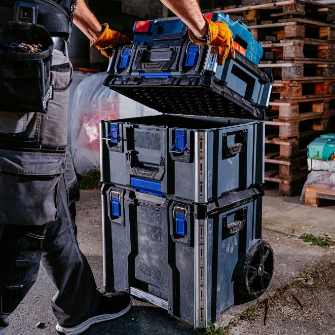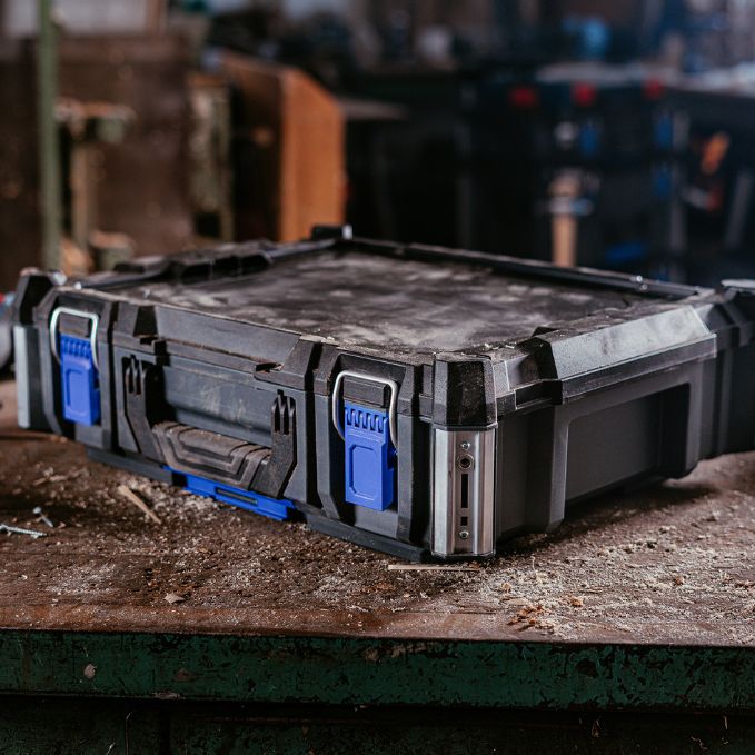 Produktbeschreibung:Kompakt, robust, durchdacht. Der Werkzeugkoffer Tool Box ist der Kleinste im L-BOXX Contractor System - ideal für alle, die nicht auf System, Schutz und Flexibilität verzichten wollenOb Baustelle, Werkstatt oder Fahrzeug, dieser Werkzeugkoffer passt sich Dir an, nicht umgekehrtDu willst stapeln, koppeln, trennen? Kein Problem - per patentiertem Einhandmechanismus geht das ganz ohne KraftaufwandUnd weil er voll kompatibel mit dem L-BOXX Contractor und dem ProClick System sowie der L-BOXX Baseline ist, wird aus einzelnen Modulen im Handumdrehen Dein perfektes Transport- und AufbewahrungssystemAluminiumschienen zum Andocken von ProClick Werkzeugtaschen, M6-Gewinde zur Befestigung von weiterem Zubehör - und die mitgelieferten Trennstege sorgen für mehr Struktur im InnenraumHier steckt mehr drin, als man auf den ersten Blick sieht. Das wetterfeste Gehäuse nach IP65 schützt Dein Werkzeug zuverlässig - auch bei Wind und WetterUnd nicht zu vergessen: Per Klickmechanismus stapelbar, dank Cubingkonzept zum stabilen Unterbau für eine mobile Arbeitsfläche erweiterbar - so entsteht vor Ort Struktur mit MehrwertUnd wenn Sicherheit auch noch eine Rolle spielt - dann kannst Du dank Safety Lock Deinen Werkzeugkoffer einfach mit zwei optionalen Vorhängeschlössern absperrenKompakt im Format, kompromisslos im Einsatz. Die L-BOXX Contractor Tool Box ist für Dich gemacht, wenn Du mit wenig Platz viel bewegen willst.Technische Daten:Farbe: Schwarz / Anthrazit / UltramarinblauAußenmaße in mm: B559 x T432 x H170Gewicht in kg: 4,1Lieferumfang:1x L-BOXX Contractor Systembox Tool Box