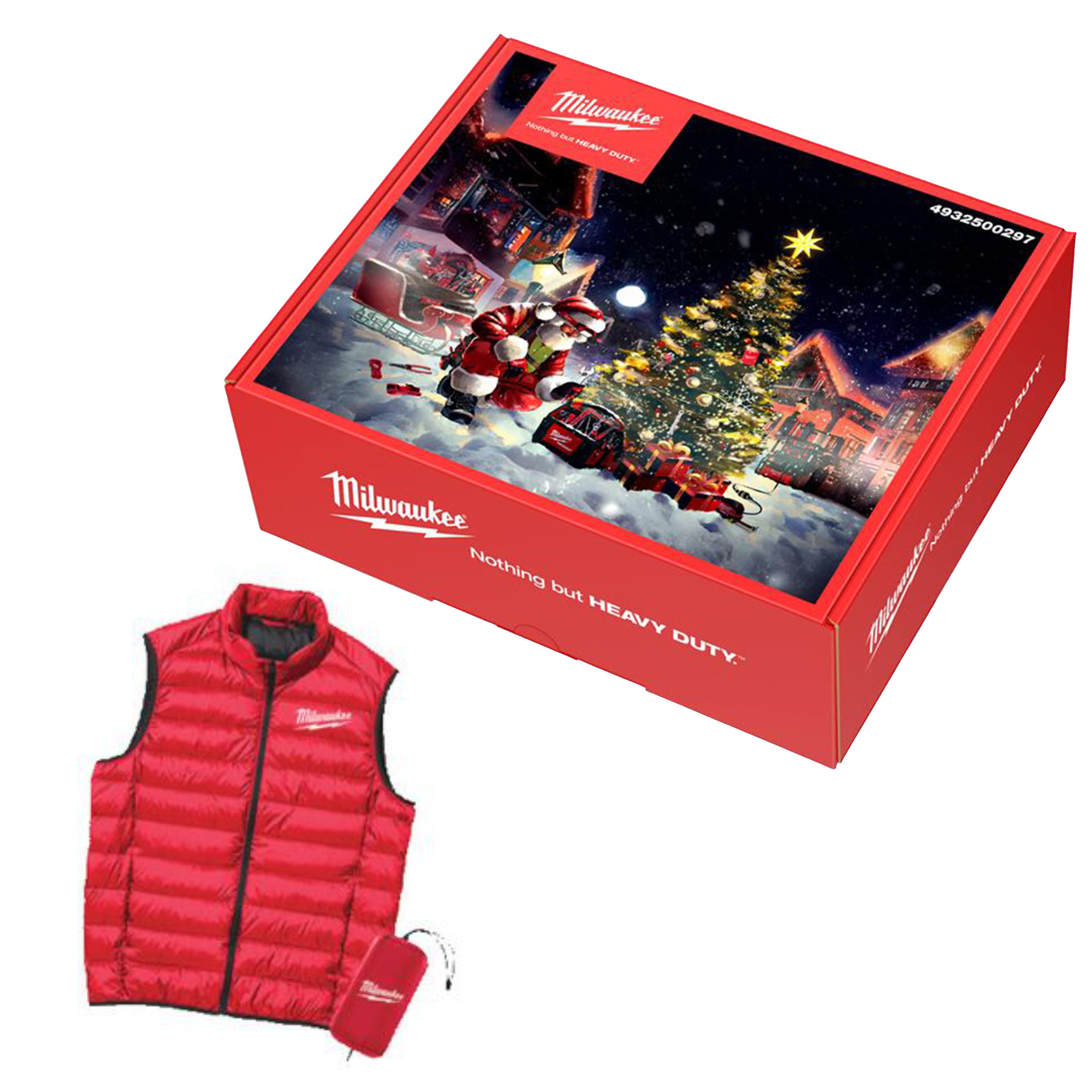 Deutschland www.milwaukeetool.eu/service/contact/ +49210396000 Milwaukee Weihnachtskalender 2025, 5-tlg. + Milwaukee Weste L/XL rot Artikel-Nr.: MWK-Kalender25-Set5 EAN: 4250845567695 Hersteller: MILWAUKEE