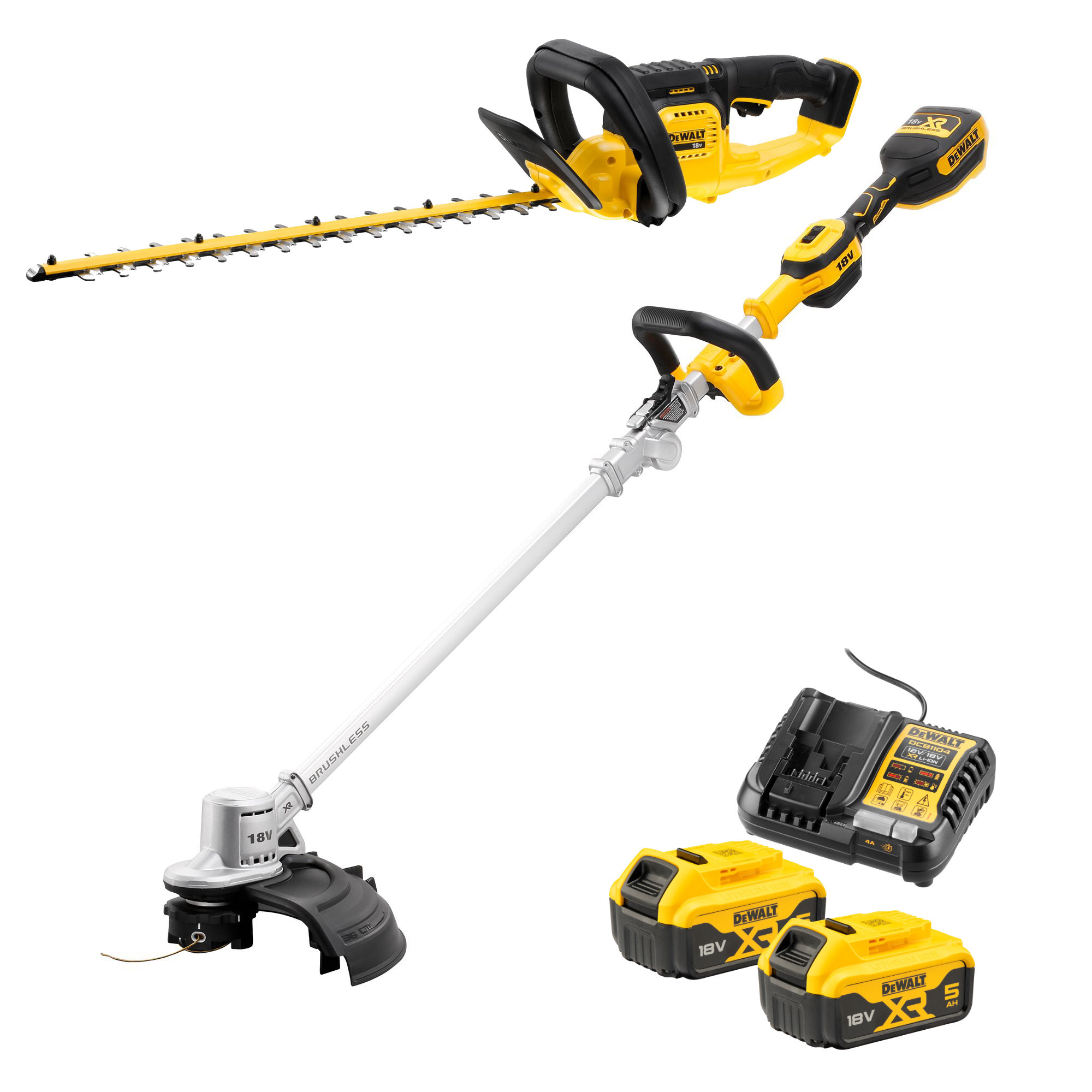 Lieferumfang:1x DeWALT Akku-Heckenschere DCMHT5631x DeWALT Messerköcher1x DeWALT Akku-Rasentrimmer DCMST5611x DeWALT Fadenspule2x DeWALT 18V 5.0Ah XR Li-Ion Akku DCB1841x DeWALT Multivoltage-Ladegerät DCB1104