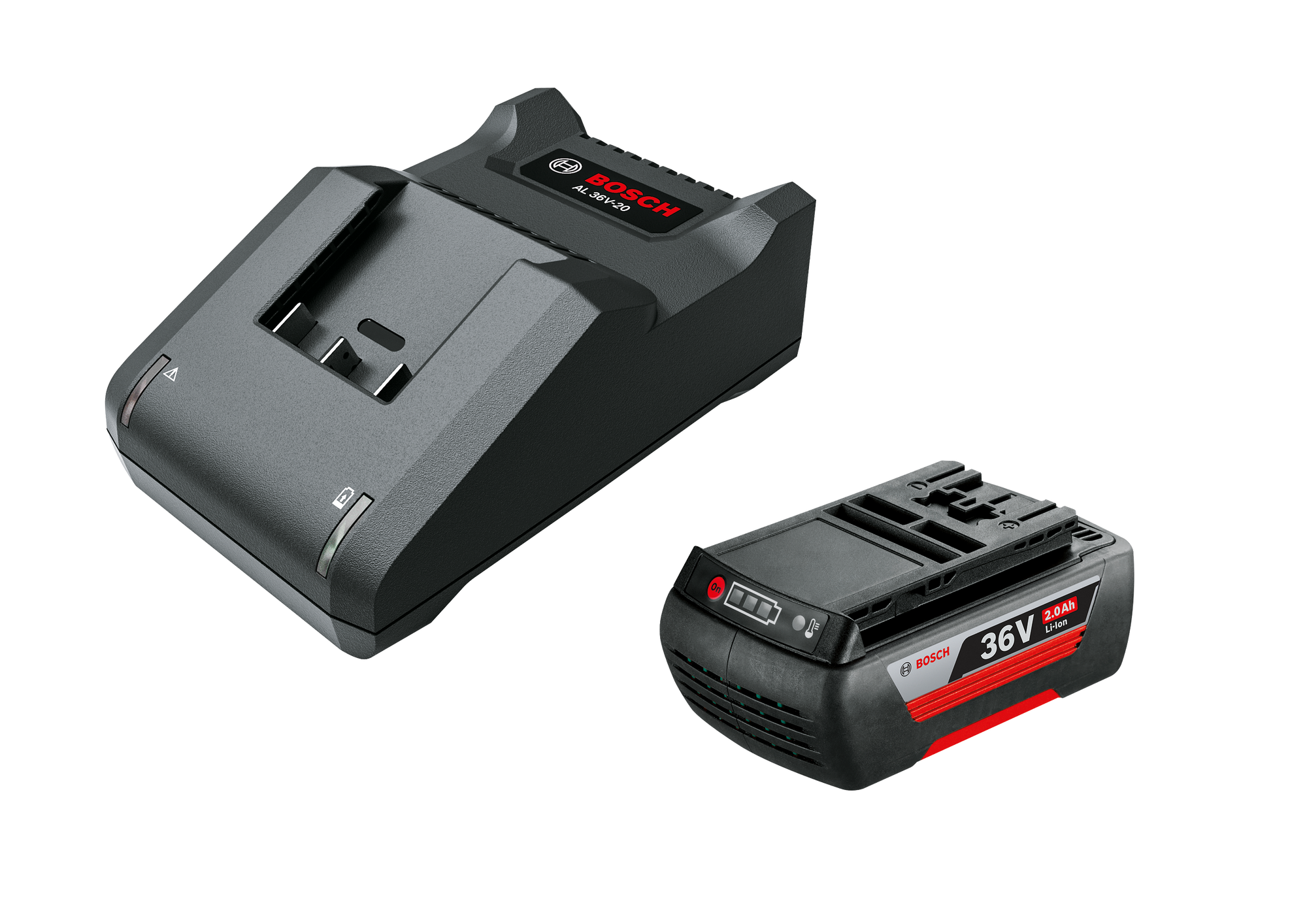 Produktbeschreibung: Starter-Set Starter-Set 36V (GBA 36V 2.0Ah + AL 36V-20). Starter-Set 36V für anspruchsvollere Gartenarbeiten. Set mit Ladegerät AL 36V-20 und 2,0-Ah-Akku. POWER FOR ALL: nur ein Akku und Ladegerät für alle 36V-Gartengeräte. Austauschbar, zeit- und kostensparend. LED-Anzeige für den Akku- und Ladezustand. Keine Selbstentladung des Akkus und kein Memory-Effekt.Technische Daten: Ladezeit bei 2,0 Ah 100 % ca.: 65 min Ladezeit bei 4,0 Ah 100% ca.: 125 min Ladezeit bei 6,0 Ah 100% ca.: 185 min Akkuspannung: 36,0 V Akku-Ladespannung, von: 36 V Akkuladespannung: 36 V Werkzeugabmessungen (L x B x H): 265 x 208 x 97 mm Verpackungsmaße (L x B x H): 265 x 208 x 97 mmLieferumfang: 1x Bosch Akku 36V 2,0Ah. 1x Bosch Ladegerät AL 36V-20.