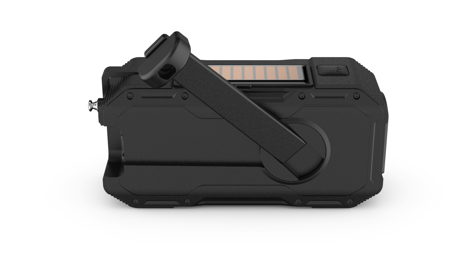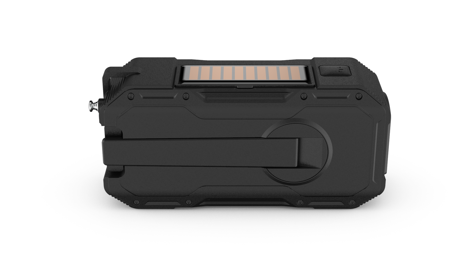 - Eingebauter Lithium-Akku für lang anhaltenden Gebrauch- Handkurbelgenerator zum manuellen Aufladen, wenn kein Strom verfügbar ist- Integriertes Solarpanel für nachhaltige Energie unterwegs
