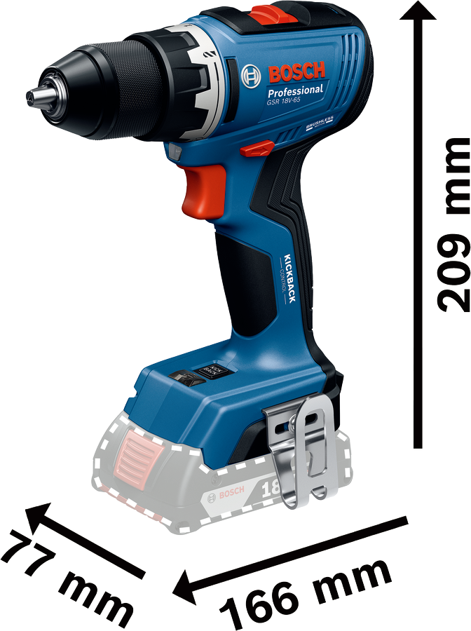 Produktbeschreibung:Wenn du einen Akku-Bohrschrauber suchst, der die nötige Power für schwierige Schraubanwendungen liefert, dann findest du nichts Besseres als den Bosch Bohrschrauber GSR 18V-65 Professional.Er bohrt mühelos durch Metall, Holz oder Kunststoff dank des verbesserten Drehmoments von 31/63 Nm und einer Drehzahl von 0-550/0-2100 min¹.Für dieses kompakte Werkzeug mit einer handlichen Kopflänge von nur 166 mm sind enge, schwierige Bereiche kein Problem.Die zuschaltbare KickBack Control verhindert einen versehentlichen Werkzeugrückschlag und sorgt damit für deine Sicherheit.Außerdem liefert das Doppel-Arbeitslicht noch mehr Leuchtkraft für die Ausleuchtung des Arbeitsplatzes.Ob Möbelmonteur, Tischler, Elektriker oder Metallarbeiter, der Bosch Bohrschrauber GSR 18V-65 Professional ist das Werkzeug der Wahl für schwierige Schraubanwendungen.Er eignet sich zum Bohren in Holz bis 35 mm, Schrauben in Holz bis 10 mm und Bohren in Metall bis 13 mm.Technische Daten:Akkuspannung 18V-Li-Ion-AkkuAkkutyp Lithium-IonenBohr-Ø Holz, max. 35 mmBohr-Ø Mauerwerk, max. 0 mmBohr-Ø Stahl, max. 13 mmBohrfutter, Ausführung 13-mm-SchnellspannbohrfutterBohrfutterspannbereich, max. 13 mmBohrfutterspannbereich, min. 1,5 mmBohrfutterspannbereich, min./max. 1,5 / 13 mmDrehmoment (hart) 63 NmDrehmoment (weich) 31 NmDrehmoment (weich/hart/max.) 31/63/- NmDrehmomentstufen 13Drehmomentstufen (Standard) 13Leerlaufdrehzahl (1. Gang / 2. Gang) 468 – 605 / 1.785 – 2.310 min-1Leerlaufdrehzahl, 1. Gang, bis 605 min-1Leerlaufdrehzahl, 1. Gang, von 468 min-1Leerlaufdrehzahl, 2. Gang, bis 2.310 min-1Leerlaufdrehzahl, 2. Gang, von 1.785 min-1Lieferumfang:1x Bosch Akku-Bohrschrauber GSR 18V-653 x Akku GBA 18V 4.0Ah (1 600 Z00 038)1x Schnellladegerät GAL 18V-40 Professional (2 607 226 251).1x L-BOXX 136