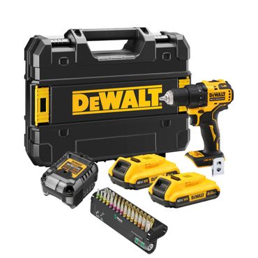 DeWALT Akku-Bohrschrauber DCD708D2T 18 V, 2x 2,0 Ah und Ladegerät + Wera Bit-Check 30 Wood TORX HF, 30-tlg.