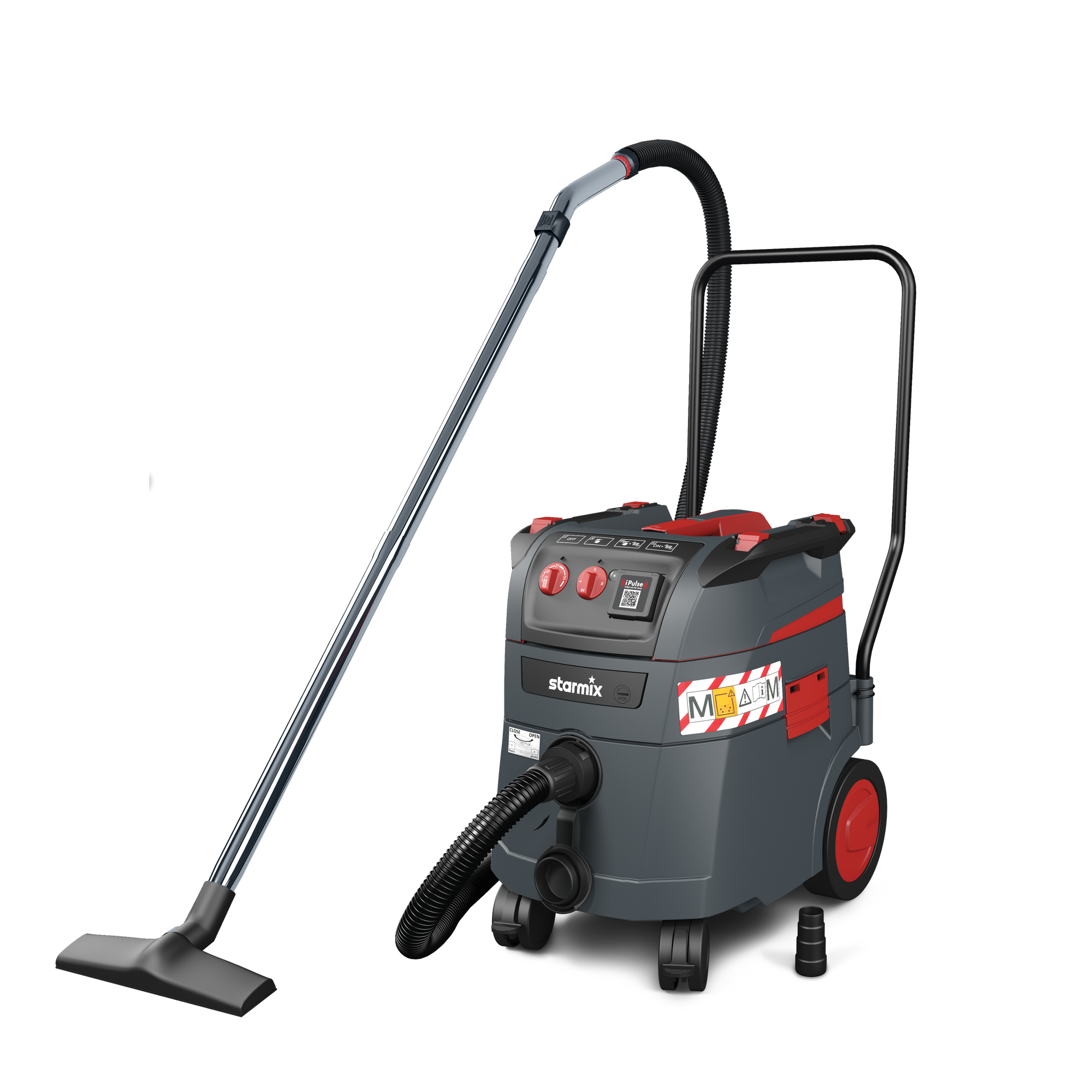 Produktbeschreibung:Permanente Filterabreinigung: Die Filter werden kontinuierlich mittels elektromagnetischer Impulse gereinigt - für maximale Saugleistung ohne Saugkraft-Unterbrechung. Auch hartnäckiger Problemstaub wie Gips wird somit zuverlässig entfernt. Deshalb sind die iPulse Industriestaubsauger für verschiedenste Einsatzgebiete und härteste Staubanwendungen geeignet.Lange Betriebsintervalle: Das hohe Behältervolumen von 35 Litern und die große Filteroberfläche der Filterkassetten ermöglichen effizientes Arbeiten mit wenigen Unterbrechungen. Darüber hinaus haben Sie die Möglichkeit einen Vorabscheider - wie den starmix Dustfixx - auf dem Gerät zu montieren, um die Filter zu entlasten und das Behältervolumen zu erweitern.Safety First: Der robuste, doppelwandige Behälter schützt das Gerät vor äußeren Krafteinwirkungen - auch dem Fall aus geringer Höhe hält der starmix Industriestaubsauger stand. Das Staubrückhaltevermögen der Filter von über 99,99% sorgt für maximale Sicherheit im Umgang mit gesundheitsschädlichen Stäuben der Staubklassen L/M/H und bei Asbest. Für zusätzliche Sicherheit sorgen integrierte Schutzmechanismen. Die Volumenstrom-Überwachung misst die Luftgeschwindigkeit und warnt zusammen mit der Kontrollleuchte akustisch & optisch bei zugesetzten Filtern, verstopftem Saugschlauch oder vollem Behälter. Die Wasserstandserkennung schaltet den Sauger bei Flüssigkeitsfüllung automatisch per Sensor ab.Integrierte Gerätesteckdose: Erweitern Sie ganz bequem Ihren Aktionsradius, indem Sie Ihr Elektrowerkzeug / Powertool direkt am Sauger anschließen. Dank der verbauten Einschaltautomatik können Sie den Betrieb des Saugers per Ein- und Ausschalten Ihres Powertools steuern. Der Industriesauger läuft einige Sekunden weiter, nachdem Sie das Elektrowerkzeug abgeschaltet haben, um restlichen Staub im Schlauch abzusaugen und den Filter sowie Motor zu schützen.Technische Daten:Leistungsaufnahme: 1600 WattVolumenstrom: 75 l/sUnterdruck: 280 mbarBehältervolumen: 35 LiterSchalldruckpegel: 69 db(A)Netzleitungslänge: 8 MeterAktionsradius: 13 MeterLieferumfang:1x Starmix Industriestaubsauger iPulse M-1635 Safe Plus2x Edelstahl Saugrohre (je 50 cm)1x Anschlussmuffe abgestuft1x Edelstahl Griffrohr1x Fugendüse1x antistatischer Saugschlauch (5 m)1x Staubdüse mit Rollen1x Fahrbügel1x Zubehöraufnahme1x Smartfix Reling2x Filterkassetten3x Entleerbeutel aus Polyethylen