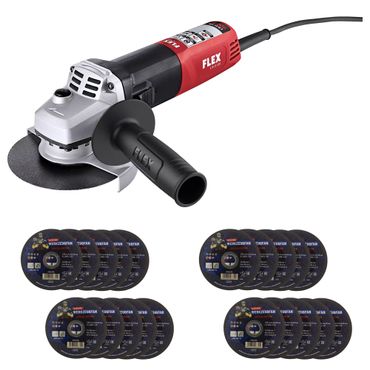Flex Winkelschleifer-Set L 9-11 125, 125 mm, 900 Watt + 20 Echter Werkzeugfan Trennscheiben