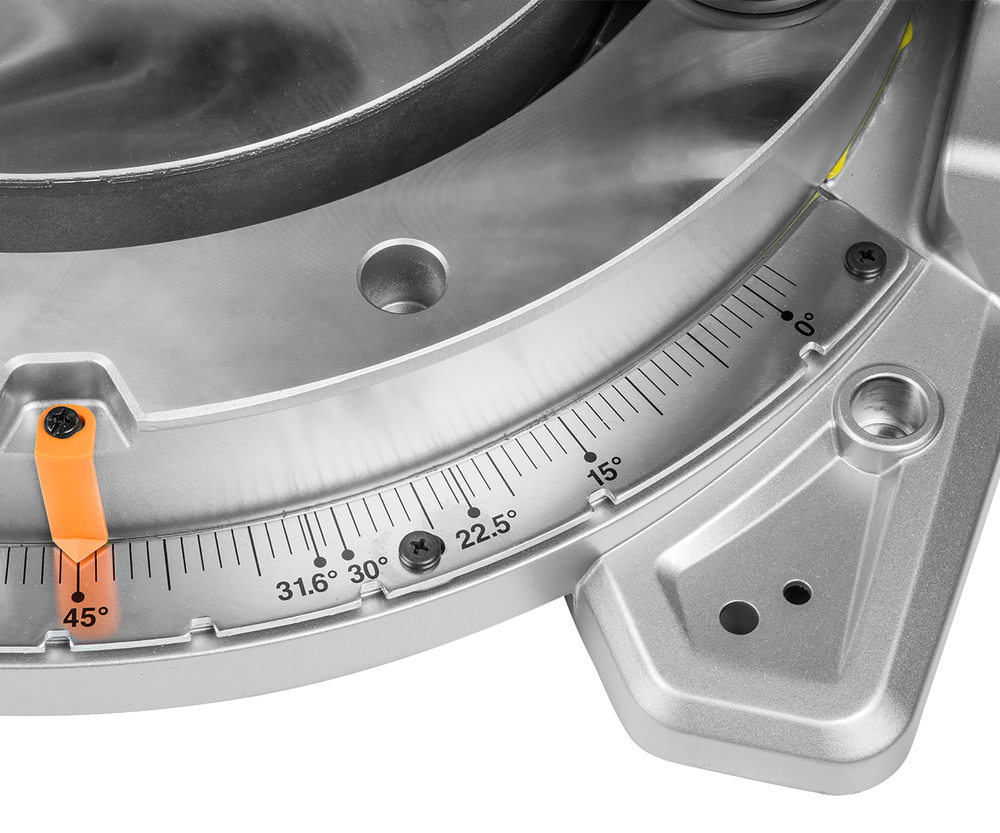 Technische Daten: Schnittleistung 90° 107 x 363 / 92 x 382 mm Leistungsaufnahme 1800 W Leerlaufdrehzahl 3200 min⁻¹ Schnittleistung 45° Gehrung 107 x 255 / 92 x 268 mm Schnittleistung Neigung links 45° 71 x 363 / 61 x 382 mm Schnittleistung Neigung rechts 45° 54x363/44x382 mm Max. Neigung links / rechts 48 / 48 ° Max. Gehrung links / rechts 60 / 60 ° Sägeblatt-Ø / Bohrung 305 x 30 mm Montagewerkzeug Länge des Netzkabels 2,5 m Staubsack Gewicht ohne Kabel 29,5 kg Produktabmessung (L x B x H) 898 x 664 x 725 mm Schallleistungspegel (LWA) 100 dB(A) Schalldruckpegel (LpA) 91 dB(A) K-Wert Geräusch 3 dB(A) Vibration ≤ 2,5 m/s² K-Wert Vibration 1,5 m/s²