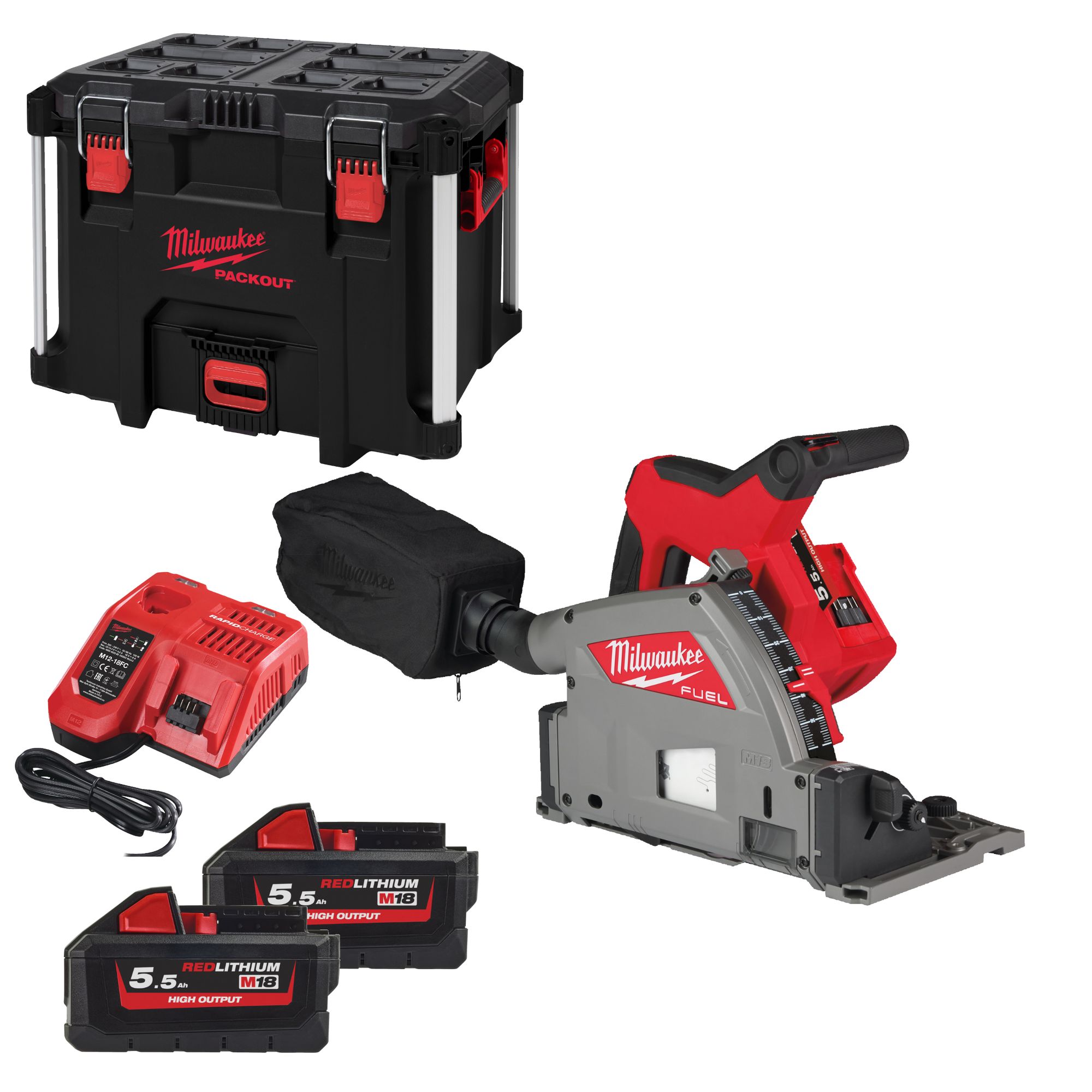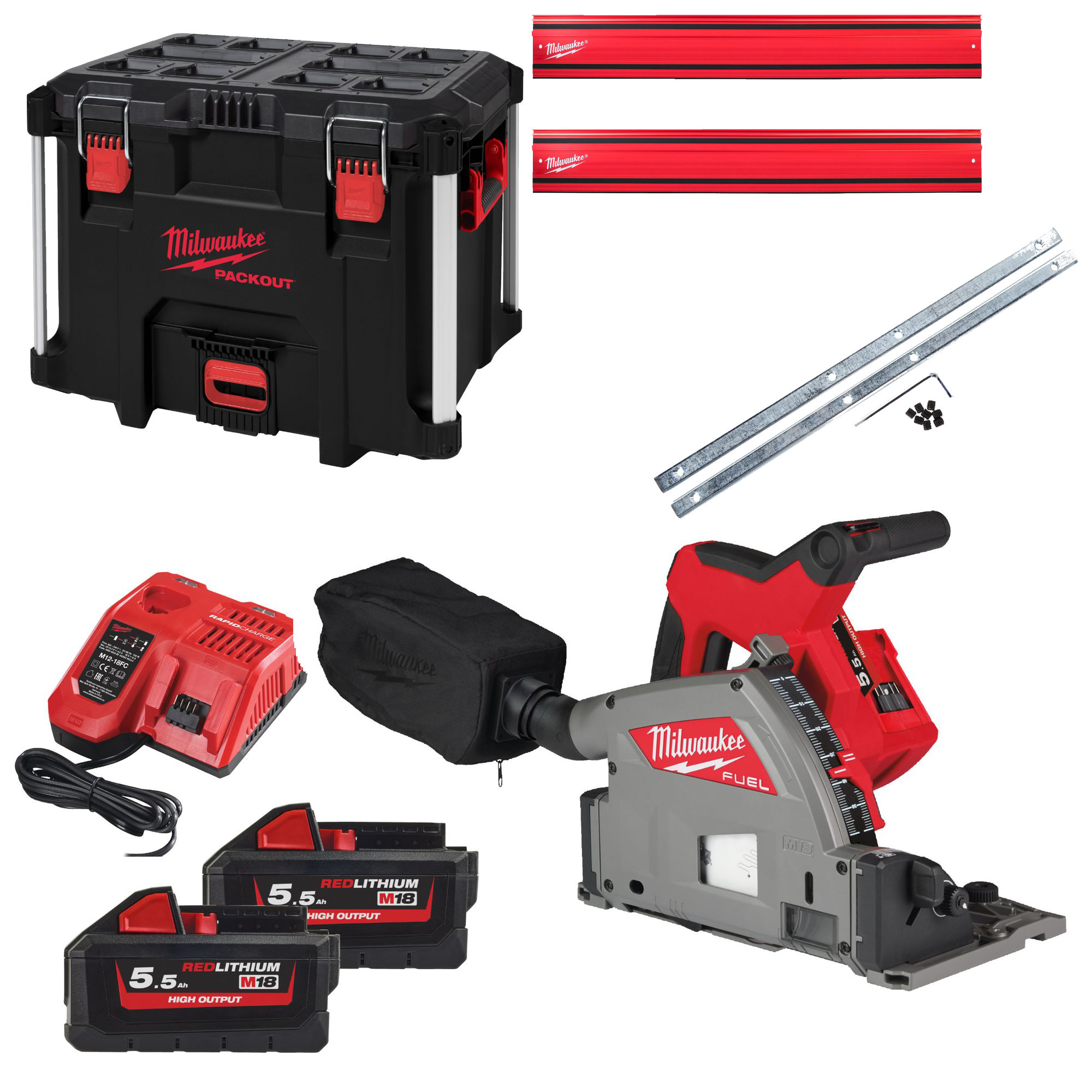 Produkteigenschaften:Milwaukee FUEL Akku-Tauchsäge MEGAPAKET M18 FPS55-552P mit 2x 5,5 HB Akkus und Ladegerät in PACKOUT Koffer + 2x Milwaukee Führungsschienen 1400 mm mit Tasche und Verbinder M18 FPS55-552P:Die Tiefeneinstellung hat zwei Skalen, eine für auf der Schiene und eine für ohne Schiene. Diese kann einfach per Knopfdruck eingestellt werden.Die Neigungseinstellung hat Anschläge bei 22,5 °, 45 ° und 48 °. Sie hat auch eine -1 für einen Rückschnitt.Das einfache Blattwechselsystem verriegelt den Schalter und das Sägeblatt in Position, während das Blatt gewechselt werden kannDie M18 FUEL Tauchsäge liefert Leistung für Schnitte mit der gleichen Geschwindigkeit wie eine entsprechende Netzkreissäge - mit der Möglichkeit, 45 Meter 18 mm Sperrholz mit einer Akkuladung von 5,5 Ah zu schneidenDie Tiefenverstellung hat zwei Skalen (auf der Schiene/ohne Schiene). Diese lassen sich ganz einfach per Knopfdruck verstellenÄußerst flache Schutzhaube ermöglicht wandbündige Schnitte mit nur 12 mm Distanz zur WandEffiziente Staubabsaugung in Verbindung mit externem Absaugsystem (DEK26 kompatibel)Die Vorritz-Funktion ermöglicht einen 1-mm-Rückschnitt, um Splitter in laminierten Materialien zu minimierenDie Neigungseinstellung hat Anschläge bei 22,5°, 45° und 48°. Außerdem gibt es eine -1 Einstellung für einen Rückschnitt.Die Säge hat ein Schnittsichtfenster an der Seite für Schnitte, bei denen die Vorderseite des Blatts sichtbar sein muss, sowie einen gefederten SpaltkeilSpindelarretierung für einfachen SägeblattwechselEinziehbarer Spaltkeil sorgt dafür, dass der Spaltkeil auch bei Tauchschnitten in Position bleibtVariable Drehzahl von 2500 U/min bis 5600 U/minDie DNA unserer Fuel -Plattform definiert das Gleichgewicht von kabellosen Technologien. MILWAUKEE®NULLs bürstenloser PowerState Motor, Redlithium -Technologie sowie die Redlink Plus Electronik bieten hervorragende Leistung, Laufzeit und HaltbarkeitKompatibel mit allen MILWAUKEE® M18 AkkusTechnische Daten:Akku Li-ionAkku im Lieferumfang 2 x M18 HB5.5Akkusystem M18Bezeichnung: Modellvariante M18 FPS55-552PBohrungsdurchmesser [mm] 20By technology FuelGTIN 4058546360603Geliefert in 1 PACKOUT xl toolboxGewicht mit Akku [EPTA] [kg] 4.9 (M18 HB5.5)Ladegerät im Lieferumfang M12-18 FCLeerlaufdrehzahl [min_1] 2500 - 5600Max. Trenntiefe [mm] 59 mmSpannung [V] 18Sägeblattdurchmesser [mm] 165Lieferumfang:1x Milwaukee FUEL Akku-Tauchsäge M18 FPS55-552P2 x Akkupack M18 HB5.51x Ladegerät M12-18 FC1x PACKOUT XL Toolbox2x Milwaukee Führungsschiene GR 14001x Milwaukee Verbindungsstück PSA-2 zum Verbinden mehrerer Führungsschienen GR800/1400/27001x Milwaukee Führungsschienentasche PSA-4 für GR800/1400