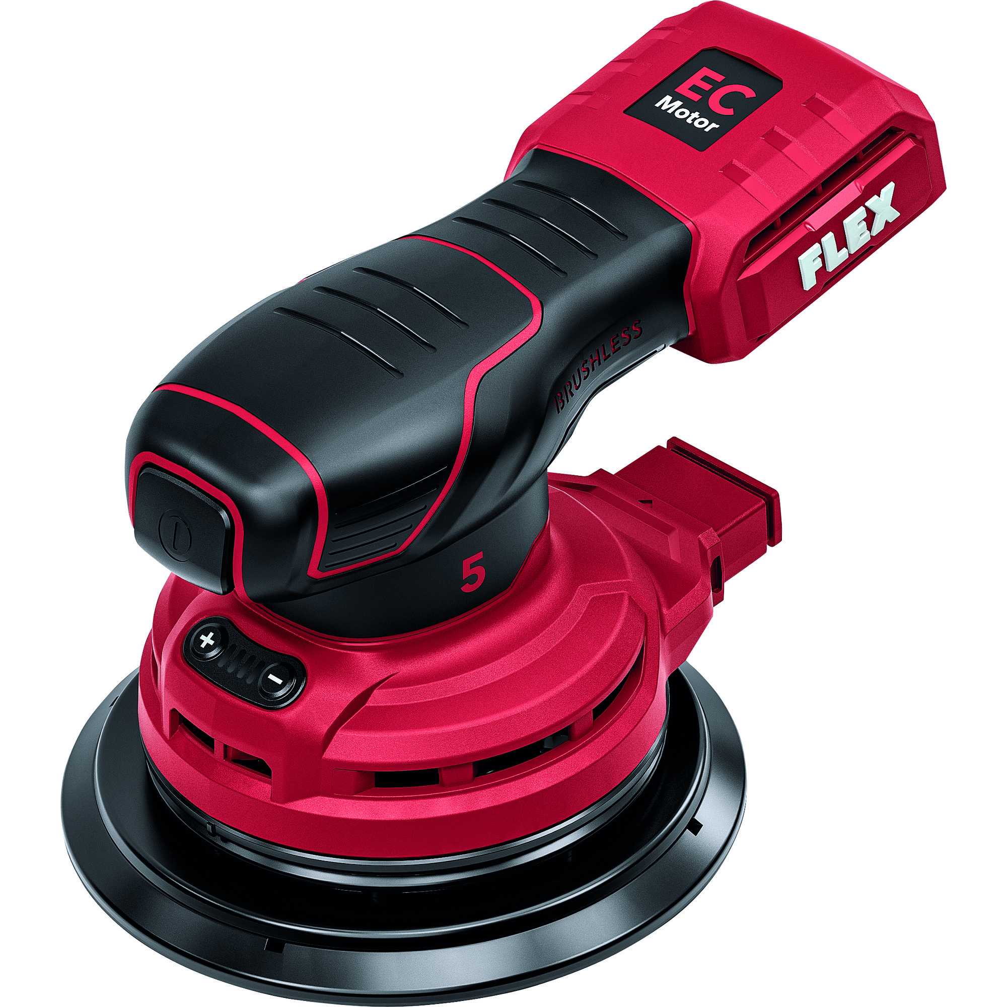 Produkteigenschaften:Leichter, kompakter Einhand-Exzenterschleifer, besonders ergonomisch und vibrationsarm durch spezielle Auswuchtung für ermüdungsfreies und gelenkschonendes ArbeitenMaterialgerechte Schleifgeschwindigkeit durch elektronische DrehzahleinstellungElektronik: Drehzahlvorwahl in 4 StufenErgonomisch gestaltete, handliche Griffkappe mit Softgrip-Einlage sorgt für einen sicheren Halt und gute FührungE-Signal Schalter zur einfachen, sicheren Bedienung mit Schnell-Stopp Funktion verhindert ein Nachlaufen der SchleifplatteAusgestattet mit Tellerbremse, dadurch entstehen keine Schleifriefen am Werkstück und es entfällt eine teure NachbearbeitungAnschlussmöglichkeit für externe Staubabsaugung mit Ø 27 mm, Antistatik-Saugschlauch SH 27x3,5m AS (445.045)Integrierte Absaugung mit StaubfiltersackKlett-Schleifteller mit Multilochsystem für optimale Absaugung, passend für alle handelsüblichen Schleifmittel Ø 150Bürstenloser Motor mit höherem Wirkungsgrad und längerer LebensdauerElectronic Management System (EMS) schützt die Maschine, verlängert die Lebensdauer und erhöht die EffizienzLED Akku-KapazitätsanzeigeFLEX Akku-System: Betrieb mit FLEX 18,0 V/5,0/2,5 Ah Akkupacks. Lieferung ohne Akku, ohne Ladegerät