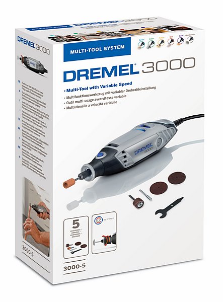 Deutschland 0711/ 99 522 020 Dremel 3000-5 Multifunktionswerkzeug (130 W) mit 5 Zubehöre Artikel-Nr.: F0133000JU EAN: 8710364078356 Hersteller: DREMEL