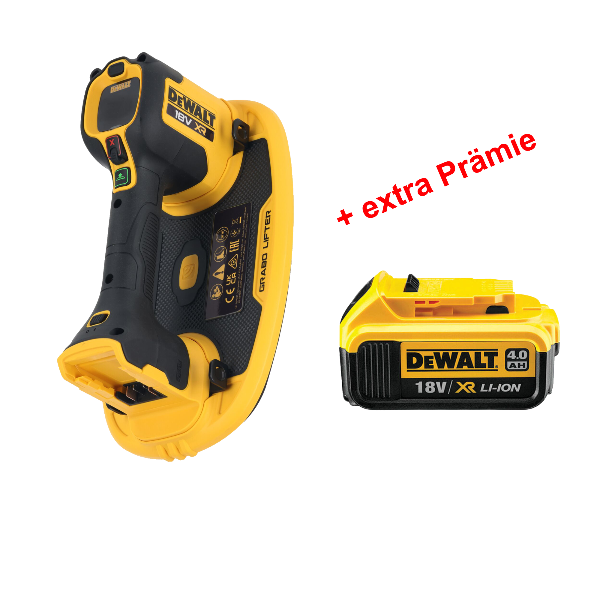 Deutschland 06126/211 DeWALT Vakuum-Heber DCE590N 18V XR , ohne Akku und Ladegerät + Prämie Akku 18V 4,0 Ah Artikel-Nr.: DCE590N-XJ-HH EAN: 4250845525626 Hersteller: DEWALT