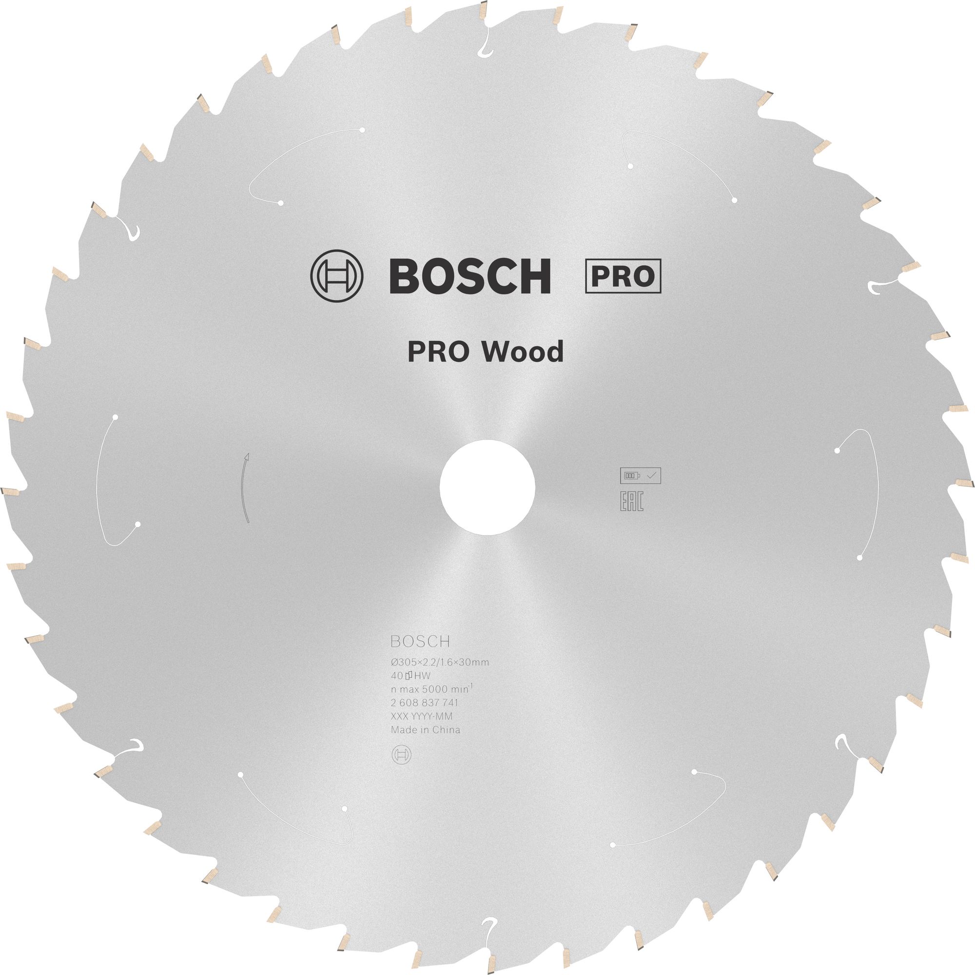 Deutschland https://www.bosch-pt.com 0711/8110 Bosch PRO Wood cordless Kreissägeblatt, 305 x 2,2 x 30 mm, T40
