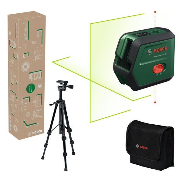 Description du produit :Laser lignes croisées AdvancedLevel 2G Set.Apporte vos idées sur le mur avec précision.Projection précise d'une croix laser avec un point d'aplomb supplémentaire en haut et en bas grâce à la fonction de nivellement automatique.Lignes laser vertes : jusqu'à quatre fois plus visibles, même dans des conditions de forte luminosité.Fonction d'inclinaison pour travailler en dehors de la zone d'autonivellement avec des lignes laser diagonales.Diodes laser lumineuses de haute qualité avec une précision de ± 0,4 mm/m pour des résultats de travail précis.Batterie Li-Ion 3,6 V intégrée, rechargeable sur l'appareil via USB-C®.Produit avec caractéristiques de durabilité, voir plus loin pour plus d'informations.Caractéristiques techniques :Plage de travail, env. : 15 mPlage de travail de la ligne laser : 15 mDiode laser, ligne laser de : 515 nmDiode laser, ligne laser jusqu'à : 530 nmDiode laser, ligne laser : 515 - 530 nmDiode laser, point laser de : 650 nmDiode laser, point laser jusqu'à : 660 nmDiode laser point laser : 650 - 660 nmClasse de laser : 2Temps de mise à niveau automatique, typ. : 4 sPlage de nivellement : ± 4Angle d'ouverture : 100 °.Précision** : ± 0,4 mm/mFiletage du trépied : 1/4Nombre de piles : 1Type de batterie : 3,6 V Li-IonBatterie : 1 x 3,6 V Li-IonTension de la batterie : 3,6 VCapacité de la batterie : 2,0 Ahdurée de charge : 4 hFonction laser sélectionnable : ouiFonction d'aplomb : ouiDimensions de l'outil (L x l x H) : 600 x 142 x 101 mmPoids : 1,910 kgEn kit avec trépied : ouiContenu de la livraison :1x Laser lignes croisées AdvancedLevel 2G Set Bosch1x trépied TT 120 (0 603 691 200).1x batterie BA 3.6V 2.0Ah.1x sacoche