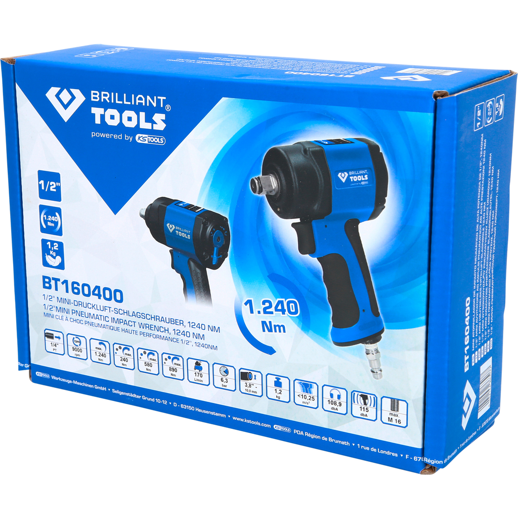 Mini clé à chocs à air comprimé Brilliant 1/2", 1.240 Nm