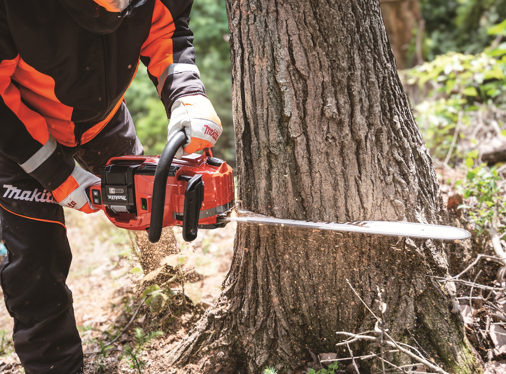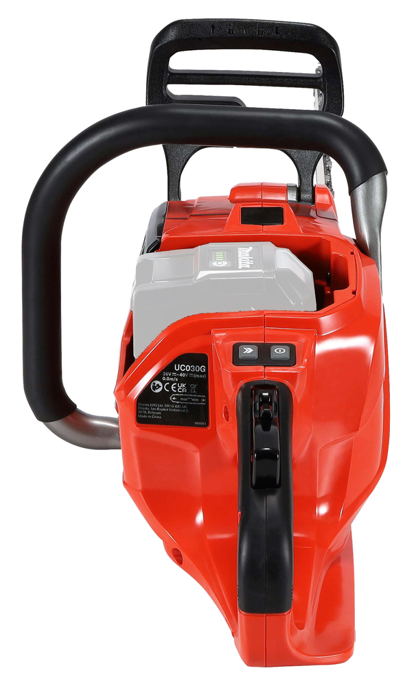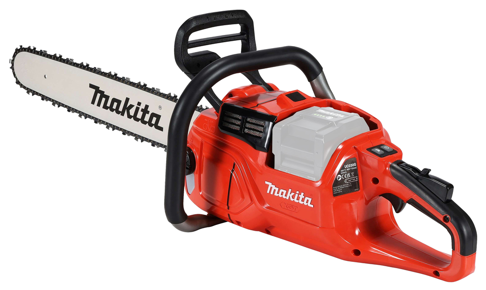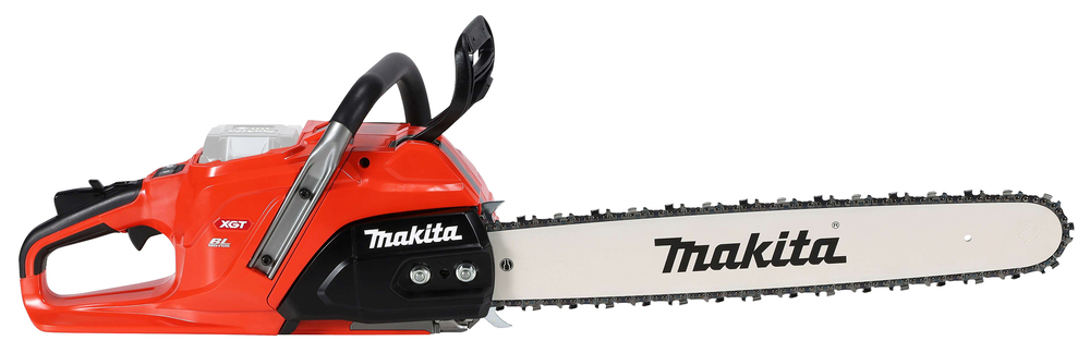Produkteigenschaften:Die leistungsstärkste XGT 40V max. Akku-Kettensäge von Makita!Die leistungsstarke Akku-Kettensäge in Signalfarbe Rot ist besonders für schwere Anwendungen wie das Fällen, Ablängen und Entasten großer Holzstücke ausgelegt und liefert mit dem BL4080H maximale Leistung - vergleichbar mit einer 50 cm³ Benzin-Kettensäge.Hohe Schnittleistung: Problemloses Schneiden von Stämmen mit bis zu 400 mm Durchmesser3 Kettengeschwindigkeiten (ECO / Medium / High) für optimales Energiemanagement inkl. Memory-FunktionDrehzahlsteuerung über den Gashebel - für volle Kontrolle beim SchneidenIPX4M-zertifiziert - spritzwassergeschützt, auch für Regen geeignetEinfache Bedienung mit Symbolen, leuchtstarken LEDs und taktilen TastenDeutlich sichtbare Fälllinie - erleichtert das Ausrichten beim FällenWerkzeuglos entfernbarer Luftfilterdeckel - einfache Reinigung & weniger SchmutzeintragVerbesserter Sicherheitsschalter und automatische Abschaltung nach 5 MinutenErgonomischer Softgriff - sicherer Halt, auch bei längeren EinsätzenAutomatische Kettenschmierung einstellbar - mit großem Öltank (260 ml)Ölstand bequem kontrollierbar durch SichtfensterVerliersichere Muttern - für schnellen Schwert- und Kettenwechsel ohne SuchenTechnische Daten:Akkusystem XGT: 1Akkuspannung: 40 VAkkutyp: Li-ionTank Kettenöl: 260 mlKettengeschwindigkeit: 29,0 m/sSchienenlänge: 400 mm (16") / 450 mm (18") / 500 mm (20")Kettenteilung: 0,325 "Kettenstärke: 0,05 / 0,063 "Schienennutbreite: 1,3 / 1,6 mmTreibgliederzahl: 67 / 74 / 82Schallleistungspegel (LWA): 104 dB(A)Schalldruckpegel (LpA): 96 dB(A)K-Wert Geräusch: 3,0 dB(A)Vibrationswerte, Holz schneiden: 4,1 m/s²Vibrationsunsicherheitsfaktor (K-Wert), Holz schneiden: 1,5 m/s²Gewicht inkl. Akku: 6,6 - 7,8 kgProduktabmessung (L x B x H): 449 x 232 x 280 mmSchutzart (IP Code): IPX4MBürstenloser Motor: 1Lieferumfang:1x Makita Akku-Kettensäge UC030GZ031x Sägeschiene 50 cm 1915Y9-91x Sägekette 50 cm 1916A3-91x Sägekettenschutz 50 cm 4133H6-71x Kombischlüssel 13-16 782023-71x Feilenhalter mit Rundfeile D-70960(ohne Akku und Ladegerät)
