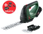 Produktbeschreibung:Akku-Gras- und Strauchschere AdvancedShear 18V-10.Kompakt und kraftvoll: vielseitige, leistungsstarke Strauch- und Grasschere.Flexibles 18V-Gerät mit zwei Messern zum Formen und Trimmen.Kraftvoll und trotzdem kompakt: 18V POWER FOR ALL-Akku und -Motor.Einhandbedienung: ideal zum Formen und Trimmen von jungen Hecken, Sträuchern oder Gras.Durchschnittlich bis zu 85 Quadratmeter pro Akkuladung.Die Syneon Technology steuert den Energieverbrauch für optimale Effizienz und längere Laufzeit.POWER FOR ALL: ein Akku für das komplette Home & Garden-Gerätesystem.Technische Daten:Kompatibler Akku: 18V POWER FOR ALL ALLIANCEAkkuladezeit: 2 hAkkutyp: Lithium-IonenArbeiten mit Akkukapazität: 2 AhLeerlauf-Laufzeit: bis zu 85 minMesserlänge: 20 cmMesserbreite: 100 mmMesserabstand: 8 mmSchnittfläche pro Akkuladung, max.: 85 m²3,6 Volt: nein7,2 Volt: nein10,8 Volt: nein„Anti-Blockier-System“: jaSDS-System: jaLadezustandsanzeige: jaLieferung ohne Akku und Ladegerät: jaSchwingungsemissionswert ah []: 2,5 m/s²Unsicherheit K []: 1,5 m/s²Schwingungsemissionswert ah []: 2,5 m/s²Unsicherheit K []: 1,5 m/s²Akkuspannung: 18,0 VAkku-Empfehlung: >= 2,0 AhTeleskopgriff: neinStrauch- und Grasscheren-Set: jaWerkzeugabmessungen (L x B x H): 462 x 105 x 163 mmLieferumfang:1x Bosch Akku-Gras- und Strauchschere AdvancedShear 18V-101x Grasmesser, 100 mm (F 016 800 605).1x Strauchmesser, 200 mm (F 016 800 604).1x Bosch Starter-Set 18V Alliance: 1x 2,5 Ah und Ladegerät AL 18V-20 (1600A02625)