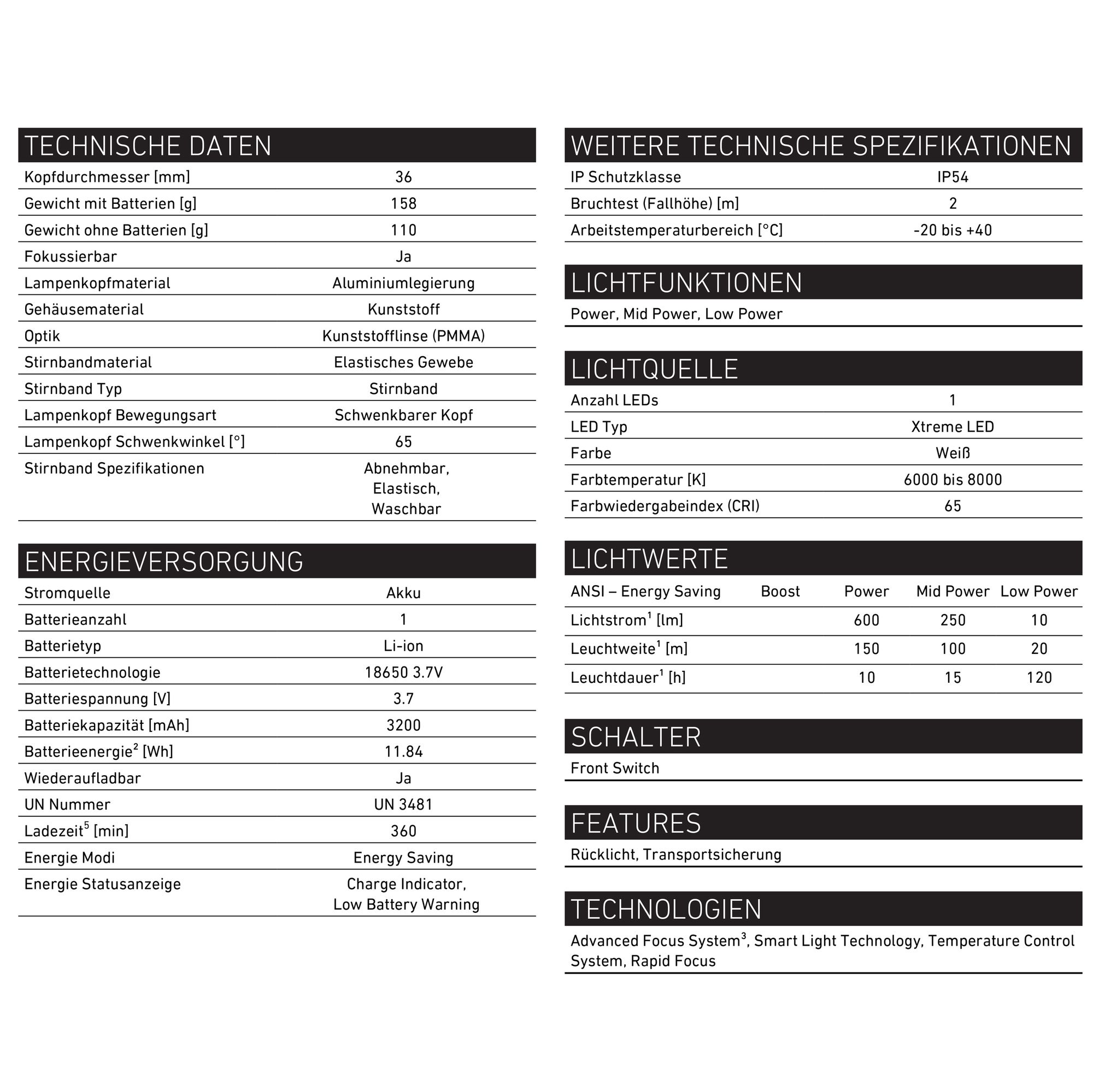 LEDLENSER Stirnlampe H8R:Kopfdurchmesser [mm] 36