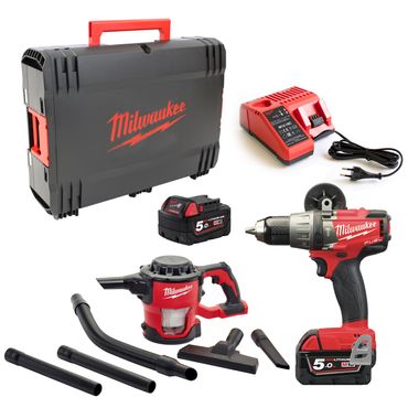 Milwaukee Akku-Handstaubsauger M18 CV-0:Leistungsstarker 18 Volt Akku-HandstaubsaugerHEPA Filter fängt 99,97% aller StaubpartikelArretierbarer Schalter für den DauerbetriebVielseitiges Zubehör ermöglicht umfangreiche AnwendungsbereicheGeschützter AuffangbehälterSichtfenster für einfache Überprüfung der Schmutzmenge im AuffangbehälterBis zu 23 Minuten Laufzeit mit einem 5.0 Ah Akku und 43 Minuten mit einem 9.0 Ah Akku100% Systemkompatibel mit dem Milwaukee® M18™ ProduktprogrammAkku und Ladegerät nicht im Lieferumfang enthaltenTechnische Daten:Milwaukee Akku-Schlagbohrschrauber FUEL M18 FPD-502XAkku Li-ion Li-ion Li-ion Li-ionAkkukapazität (Ah) 5.0Anzahl mitgelieferter Akkus 2Artikelnummer 4933451061Bohrfutter-Spannbereich (mm) 13Geschwindigkeitseinstellungen 2Gewicht mit Akku (kg) 2.5Holzschrauben (mm) 10Ladegerät (Ladezeit) 59 minLeerlaufdrehzahl im 1. Gang (min-1) 0 - 550 Leerlaufdrehzahl im 2. Gang (min-1) 0 - 2000Max. Bohrdurchmesser in Holz (mm) 65Max. Bohrdurchmesser in Mauerwerk (mm) 13Max. Bohrdurchmesser in Stahl (mm) 16Max. Drehmoment (Nm) 135Max. Schlagzahl (min-1) 0 - 32,000Spannung (V) 18Sound and VibrationSchalldruckpegel (dB(A)) 99.9Schalldruckpegel Unsicherheit (dB(A)) 3Schallleistungspegel gemessen(dB(A)) 110.9Schallleistungspegel Unsicherheit (dB(A)) 3Vibration drilling into Metal [m|s²] 1.29Vibration drilling into metal uncertainty [m|s²] 1.5Vibration percussion drilling into concrete [m|s²] 13.2Vibration percussion drilling into concrete uncertainty [m|s²] 1.5Vibration Schrauben (m/s²) 1.33Vibration Schrauben Unsicherheit (m/s²) 1.5