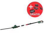 Produktbeschreibung:Akku-Teleskop-Heckenschere UniversalHedgePole 18.Ergonomisch geformt zum mühelosen Trimmen hoher Hecken.Höhenverstellbarer Teleskopstiel mit Schwenkkopf für eine bequeme Reichweite von bis zu 2,6 m.Bosch Anti-Blockier-System für eine kraftvolle und kontinuierliche Schnittleistung.Geringes Gewicht (3,6 kg), ergonomisches Design und gute Gewichtsverteilung für höheren Komfort.Perfekte Leistung und Reichweite für müheloses Trimmen hoher Hecken.43 cm Messerlänge mit 16 mm Zahnabstand.Technische Daten:„Anti-Blockier-System“: ja10,8 Volt: nein12 Volt: nein14,4 Volt: nein18 Volt: ja36 Volt: neinLithium-Ionen Technologie: jaQuick-Cut-Technologie: neinSägefunktion: neinAkkuspannung: 18,0 VKompatibler Akku: 18V POWER FOR ALL ALLIANCEAkku-Empfehlung: >= 1,5 AhAkkutyp: Lithium-IonenArbeiten mit Akkukapazität: 2,5 AhKompatibler Akkutyp: Lithium-IonenKompatible Akkuspannung: 18 VMax. m² pro Akkuladung: 200 m²Messerlänge: 43 cmMesserabstand: 16 mmLieferung ohne Akku und Ladegerät: jaHubzahl bei Leerlauf: 2.200 min-1Höhenverstellung, von: 210 cmHöhenverstellung, bis zu: 260 cmHöhenverstellung: 210 - 260 cmSchwenkkopf: 135 °Werkzeugabmessungen (L x B x H): 2600 x 200 x 160 mmGewicht: 3,600 KgVerpackungsmaße (L x B x H): 1165 x 200 x 160 mmSchwingungsemissionswert ah []: 1,1 m/s²Unsicherheit K []: 1,5 m/s²Lieferumfang:1x Bosch Akku-Teleskop-Heckenschere UniversalHedgePole 18(ohne Akku und Ladegerät)