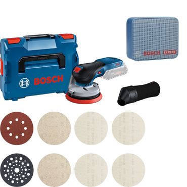 Produkteigenschaften:Ein-/Ausschalter leicht zu erreichen mit DruckknopfIntuitive WerkzeugbedienungStaubabsaugungsanschluss auf der Rückseite des Werkzeugs und kompatibel mit Staubbeutel, sowie dem Click & Clean SystemEinzigartige Ergonomie & kompaktes WerkzeugdesignGut ausbalanciert, führt zu geringerer Ermüdung beim ArbeitenAbgeleitet vom DruckluftschleiferDrehrad mit 6 GeschwindigkeitsstufenLeistungsstarker bürstenloser EC MotorRobustes Metallgehäuse für erhöhte Stabilität beim ArbeitenTechnische Daten:Spannung 18VLeerlaufdrehzahl 6.000 – 10.000 min-1Schwingkreis-Ø 2,5 mmSchleifteller-Ø 125 mmGewicht (netto / brutto) 1,09 / 1,65 kgLieferumfang:1x Bosch Akku Exzenterschleifer GEX 18V-1251x Schleifteller Medium1x Staubbeutel1x Schleifblatt C430, P1201x M480 Starter-Set1x L-BOXX 1361x Bosch EXPERT JBL GO2 Lautsprecher