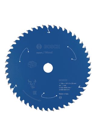 Deutschland https://www.bosch-pt.com 0711/8110 Bosch Kreissägeblatt für Akkusägen Expert for Wood, 184 x 1,6/1 x 20, 48 Zähne