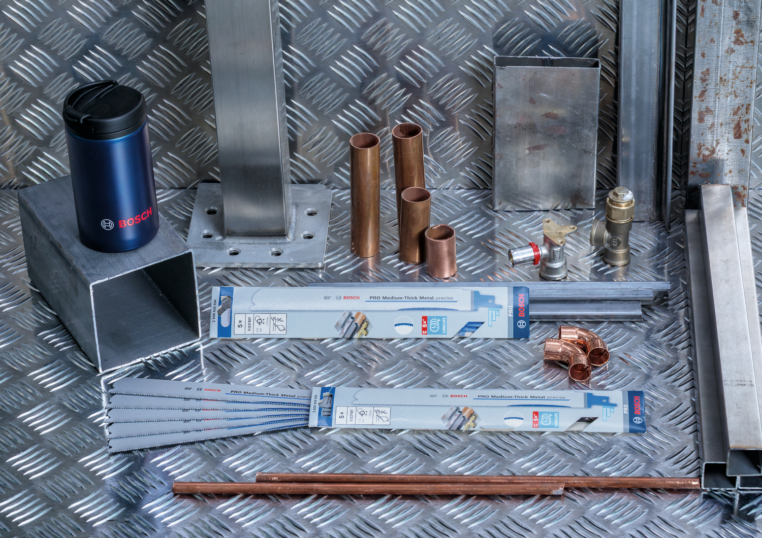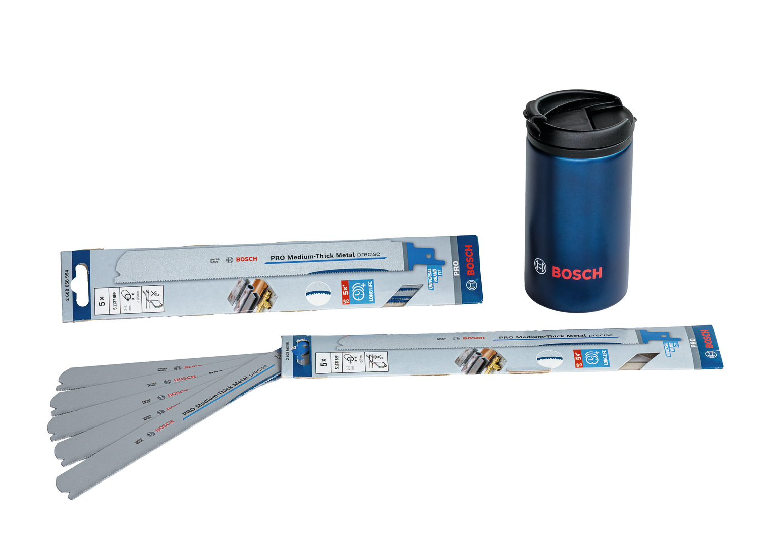 Passend auf alle Säbelsägen mit S-SchaftTechnische Daten: Zahnausführung: 3x3-Zahngeometrie Zahnteilung [mm]: 1.4+1.6+1.8 Zahnteilung [TPI]: 14+16+18 Gesamtlänge [mm]: 225 Breite [mm]: 25 Dicke [mm]: 1,1 Blattmaterial: BI-METAL Abkürzung für Blattmaterial: BIM Körpermaterial: HCS Empfohlene min. Materialstärke [mm]: 2 Empfohlene max. Materialstärke [mm]: 6 Max. Schnittleistung [mm]: 175 Typ: S 1137 BEFLieferumfang: 2x Bosch PRO Medium-Thick Metal precise S1137BEF Säbelsägeblatt, 1,1 x 25 x 225 mm, 5 Stück (2608658994) 1x Bosch Isotherm Becher (6035952275)