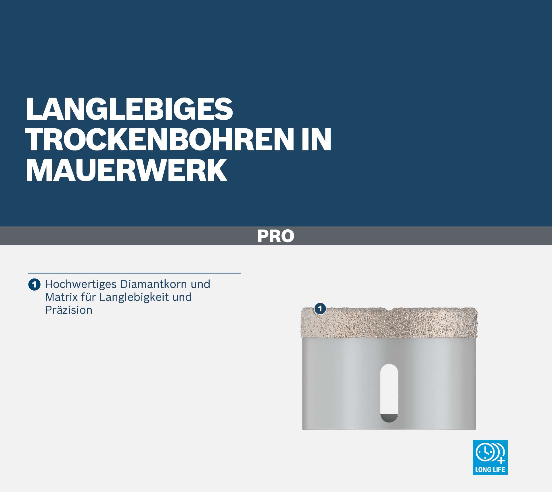 Deutschland https://www.bosch-pt.com 0711/8110 Bosch PRO Ceramic dry Trockenbohrkrone, 60 x 35 mm, X-Lock