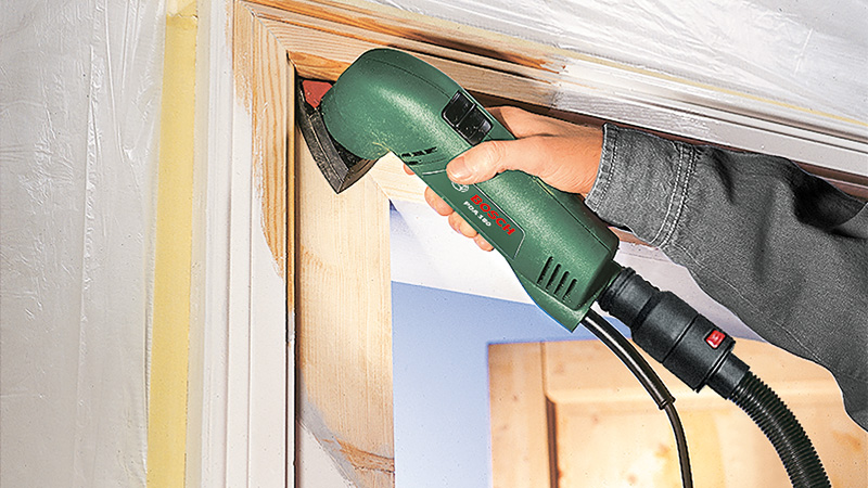 Produktbeschreibung: Deltaschleifer PDA 180. Zum Schleifen von Ecken, Kanten und schwierigen Flächen. Effektives Schleifen - leistungsstarker Motor sorgt für einen hohen Materialabtrag. Praktisch - einfaches Drehen oder Wechseln der Schleifplatte dank SDS, für optimales Schleifen. Vielseitigkeit - umfassendes Zubehörsortiment für verschiedene Anwendungen. Ideal zum Schleifen von Ecken und Kanten bei Holz oder Metall. Geeignet für Hartholz, Weichholz, lasierte und gestrichene Oberflächen und Metall.Technische Daten: Klettverschluss: ja Bosch-SDS: ja Drehzahlvorwahl: nein Bosch Electronic: nein Nennaufnahme: 180 W Schwingzahl, von: 18.400 min-1 Schwingzahl: 18.400 min-1 Schwingkreisdurchmesser: 1,5 mm Schleifplattenmaß über Eck: 92 mm Werkzeugabmessungen (L x B x H): 372 x 228 x 104 mm Gewicht: 1,100 kg Verpackungsmaße (L x B x H): 147 x 375 x 113 mm Schwingungsemissionswert ah []: 6,5 m/s² Unsicherheit K []: 1,5 m/s²Lieferumfang: 1x Bosch Deltaschleifer PDA 180 3x Schleifblätter (je 1 x White Paint, Red Wood, Black Stone).