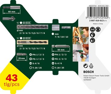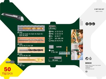 Technische Daten:Durchmesser mm: 2,0; 3,0; 4,0; 5,0; 6,0Arbeitslänge mm: 16; 25; 35; 44; 49Gesamtlänge mm: 61; 73; 87; 98; 105Abmessung(en) Set mm: 163,0 x 56,0 x 18Lieferumfang:1x Bosch PRO Wood HSS Holzspiralbohrer Set, 5-tlg.- Hersteller