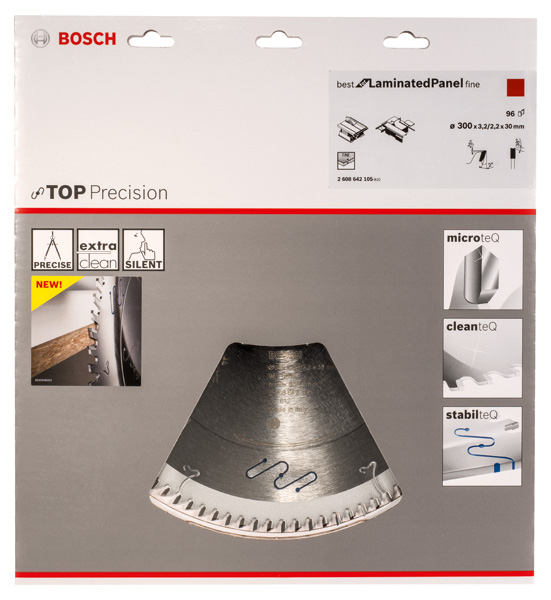 Deutschland https://www.bosch-pt.com 0711/8110 Bosch Kreissägeblatt Top Precision Best for Laminated Panel Fine 300 x 30 x 3,2 mm, 96