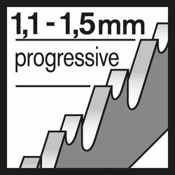 Produkteigenschaften: Das T 118 AF Flexible for Metal Stichsägeblatt ist bruchfest beim geraden Schneiden in Metall. Die gefrästen, gewellten Zähne sind zum Schneiden von Metallblech konzipiert. Die Zahnleiste aus gehärtetem HSS (Hochgeschwindigkeitsstahl) und BIM (Bimetall) ist mit hochelastischem HCS (Kohlenstoffstahl) verstärkt, wodurch das Bruchrisiko reduziert wird, und sowohl genügend Festigkeit als auch Flexibilität geboten werden, die beide erforderlich sind, um perforiertes Metallblech aus Stahl (Standard-Stärke) zu schneiden. Das Blatt ist mit einer sehr feinen progressiven Zahnteilung (1,1-1,5 mm) ausgestattet und schneidet eine Vielzahl an dünnen Metallblechen mit einer Dicke von 1-3 mm. Für den Gebrauch mit Stichsägen mit T-Schaft-Aufnahme.Technische Daten: Werkstoff: BIM Zahnausführung: gewellt, gefräst Gesamtlänge [mm]: 92 Zahnteilung [mm]: 1,1-1,5 Einsatzbereiche: dünne Bleche (1-3 mm) Typ: T 118 AFLieferumfang: 1x Bosch Stichsägeblatt T 118 AF Flexible for Metal - 100 Stück