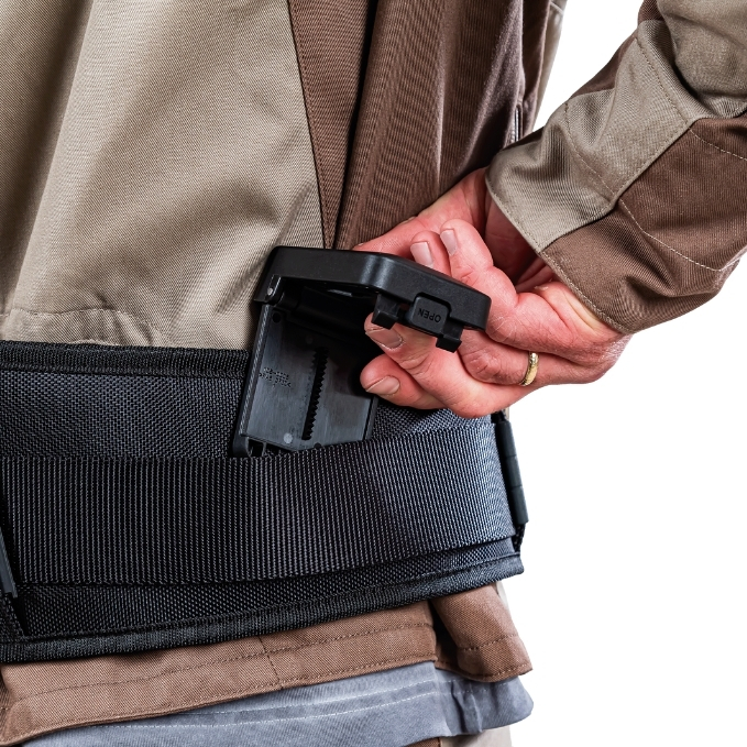 Produkteigenschaften: Der ProClick Holder ist das Kernstück und Bindeglied des Systems. Einzigartig dabei: umständliches Ein- & Ausfln des Gürtels gehört dank ProClick der Vergangenheit an. Im Bedarfsfall kann der Holder im Handumdrehen abgenommen oder durch die clevere Klickverbindung am Gürtel befestigt werden. Die verschiedenen Werkzeugtaschen, flexiblen Aufbewahrungslösungen und robusten Halterungen, die mit einer sogenannten ClickUnit ausgestattet sind, lassen sich mit einem einzigen Handgriff am Holder einklicken und fest verbinden. Endet der Arbeitseinsatz oder wechselt der Werkzeugbedarf, können die am Holder befestigten Tool Pouches mit einem Fingertip gelöst oder durch andere vorbestückte Tool Pouches ausgetauscht werden.