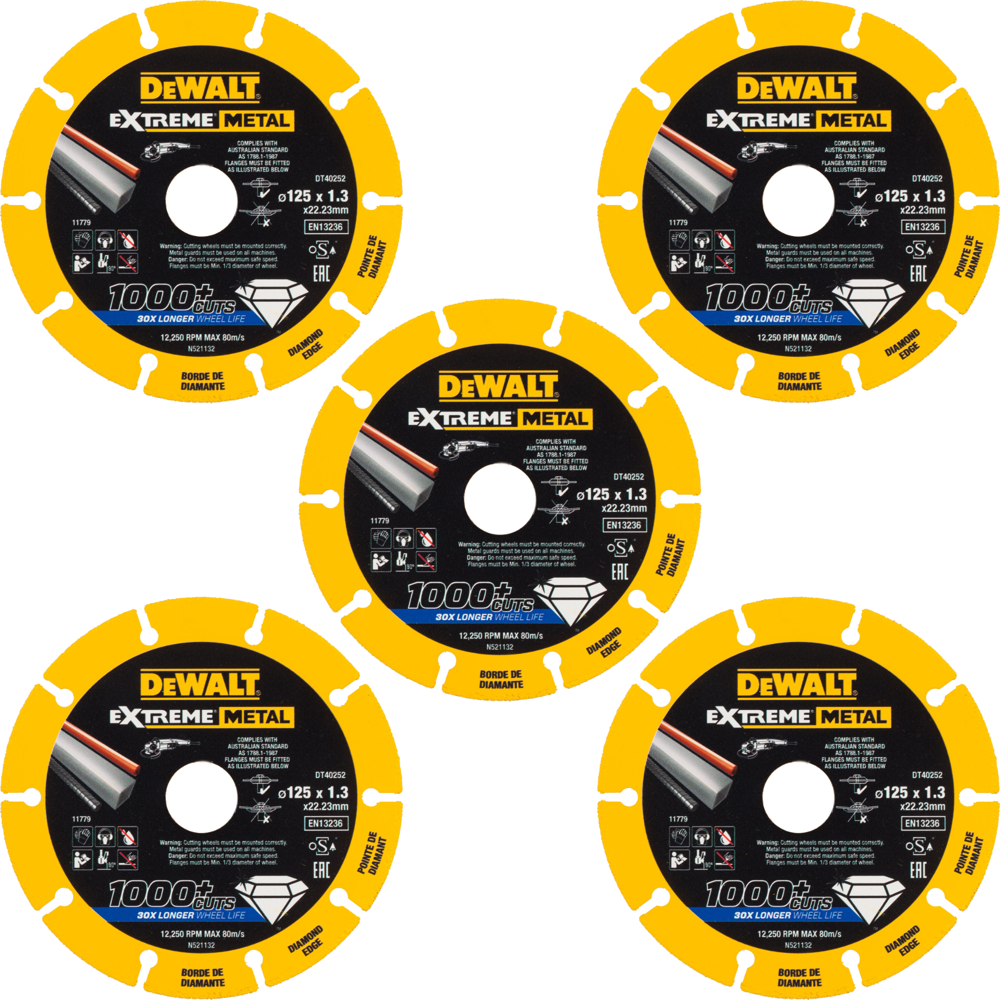 Lieferumfang: 5x DeWALT Diamanttrennscheibe 125 x 1,3 mm EXTREME METAL