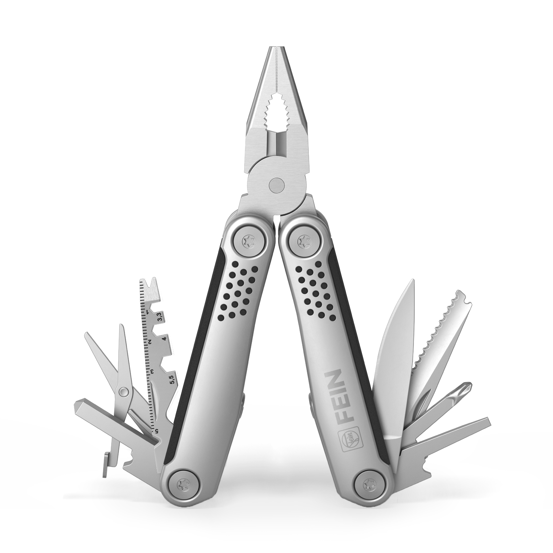 Produkteigenschaften: FEIN Multitool - Das hochwertige STRUKTURA tool 25+ von Richartz setzt den neuen Standard in Design, Präzision und Funktion! Alle ausklappbaren Funktionsteile lassen sich einfach und präzise arretieren für ein hohes Maß an Präzision und Arbeitssicherheit Bit-Set mit Bit-Adapter und 9 Bits Drahtschneider Fahrradspeichenschlüssel (2) Gegossene Zange Glasbrecher Gürteltasche Inchmaß Kabelabisolierer Kapselheber Kreuzschlitzschraubendreher Nagelzieher Schere Schlitzschraubendreher Sechskantschlüssel Säge Zentimetermaß große Klinge